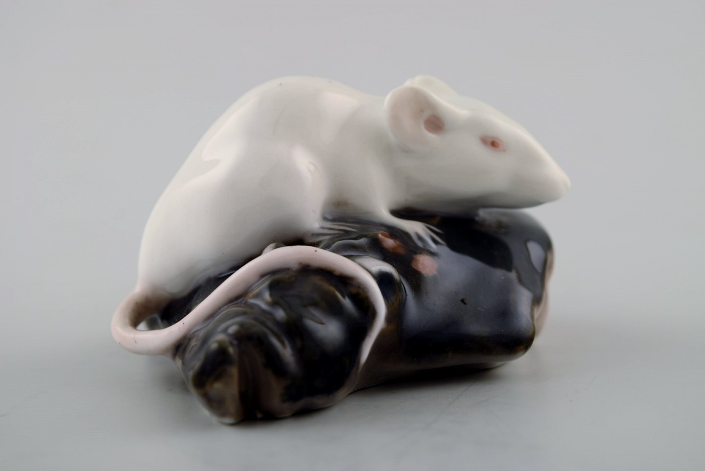 Rare Royal Copenhagen Art Nouveau figure, mouse on a fish head, number 513. Measures 8 cm. x 4.5 cm. In perfect condition, 1st. factory quality.