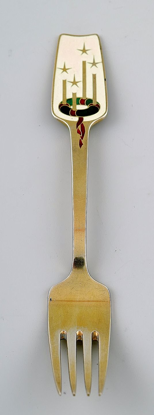 Michelsen julegaffel. Julegaffel af A. Michelsen fra 1949, forgyldt sterling sølv 925. Måler 15,5 cm. I flot stand.