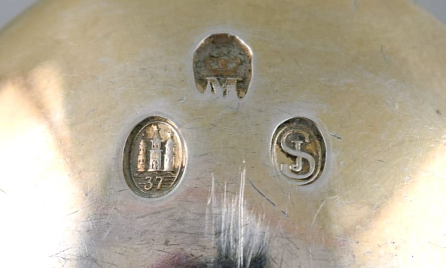 A. Michelsen Juleske 1937. Forgyldt Sterlingsølv med emalje. Måler 15,5 cm. I perfekt stand.