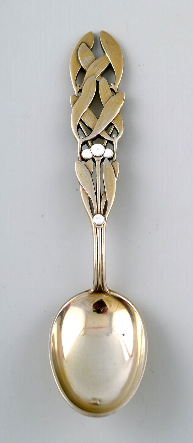 A. Michelsen Christmas spoon 1941. Gold Plated Sterling Silver with enamel. Measures 15.5 cm. In perfect condition.