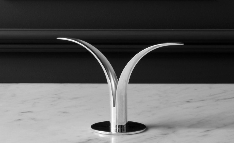 Et par lysestager i sølvpatineret messing, "Liljan", Ivar Ålenius Björk, Skultuna.