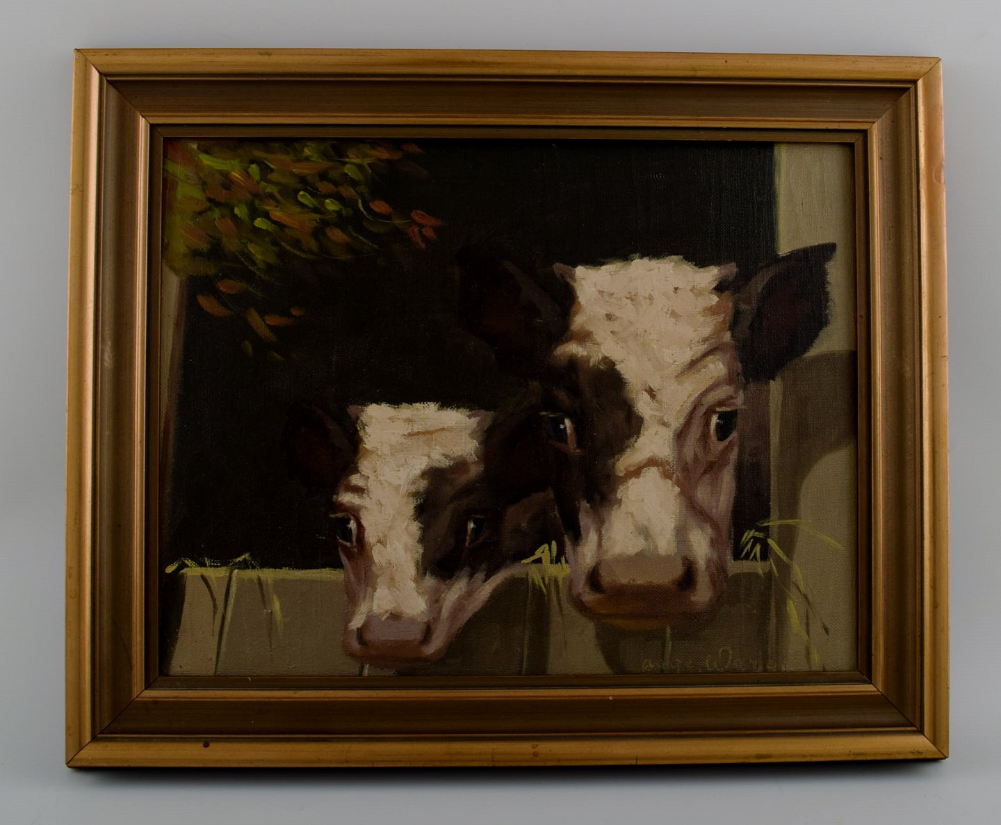AAGE WANG. (pseudonym for Mark Osmand Curtis). Oil on canvas. Motif with cows in stable door. Signed Aage Wang. Height: 32 cm., Width: 24 cm. Framed (40x32) In perfect condition.