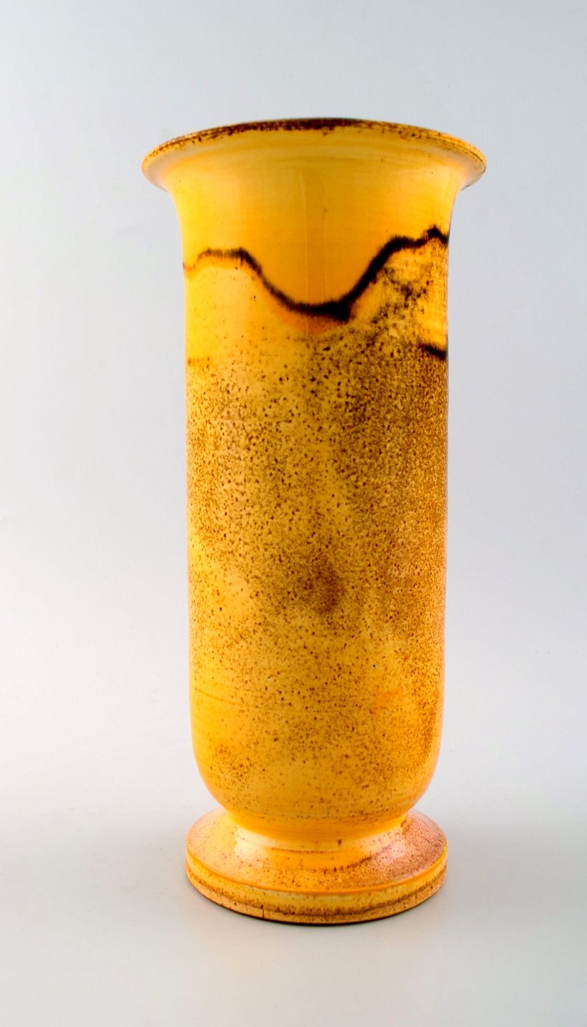 Stor Kähler, HAK, Svend Hammershøi, glaseret gulvvase i stentøj. I perfekt stand. Flot urangul glasur. Stemplet. Måler 28 x 13 cm.