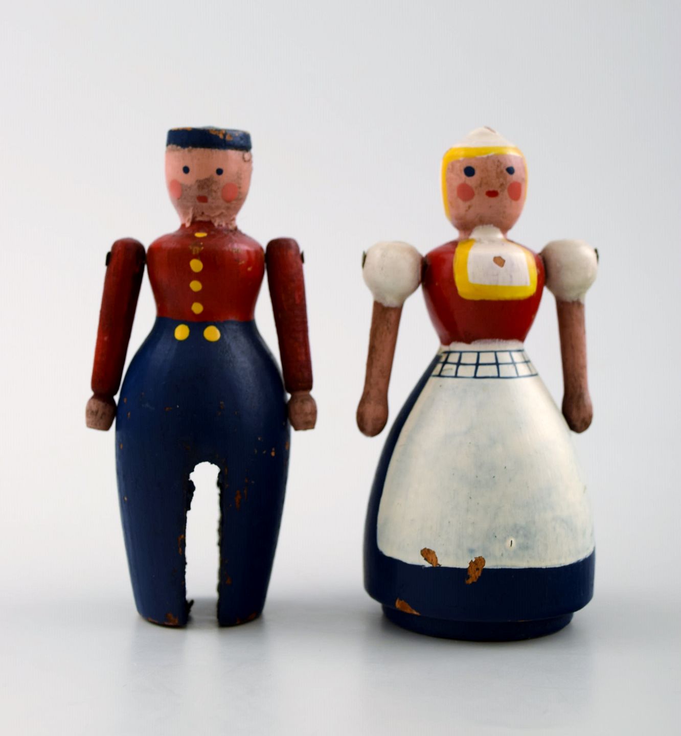 Sjældent hollænderpar, mand og kone, af Kay Bojesen (1886-1958), bemalet træ. Ustemplede. Højde 8 cm. Fremstår med lettere slitage.