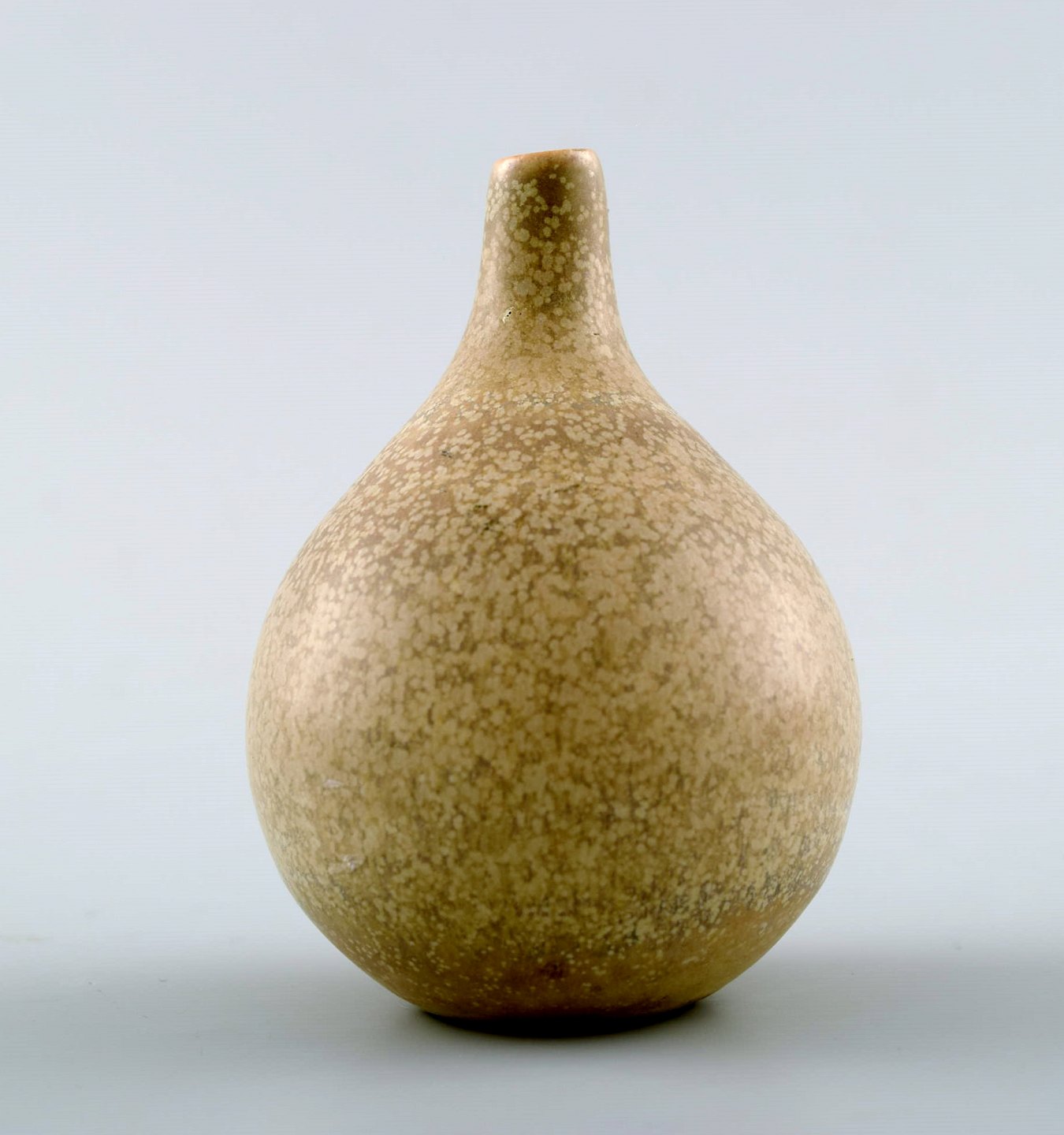 Stig Lindberg (1916-1982), Gustavsberg Studio hand, ceramic miniature vase. Beautiful eggshell glaze. Measures 8.5 x 6.5 cm. In perfect condition.