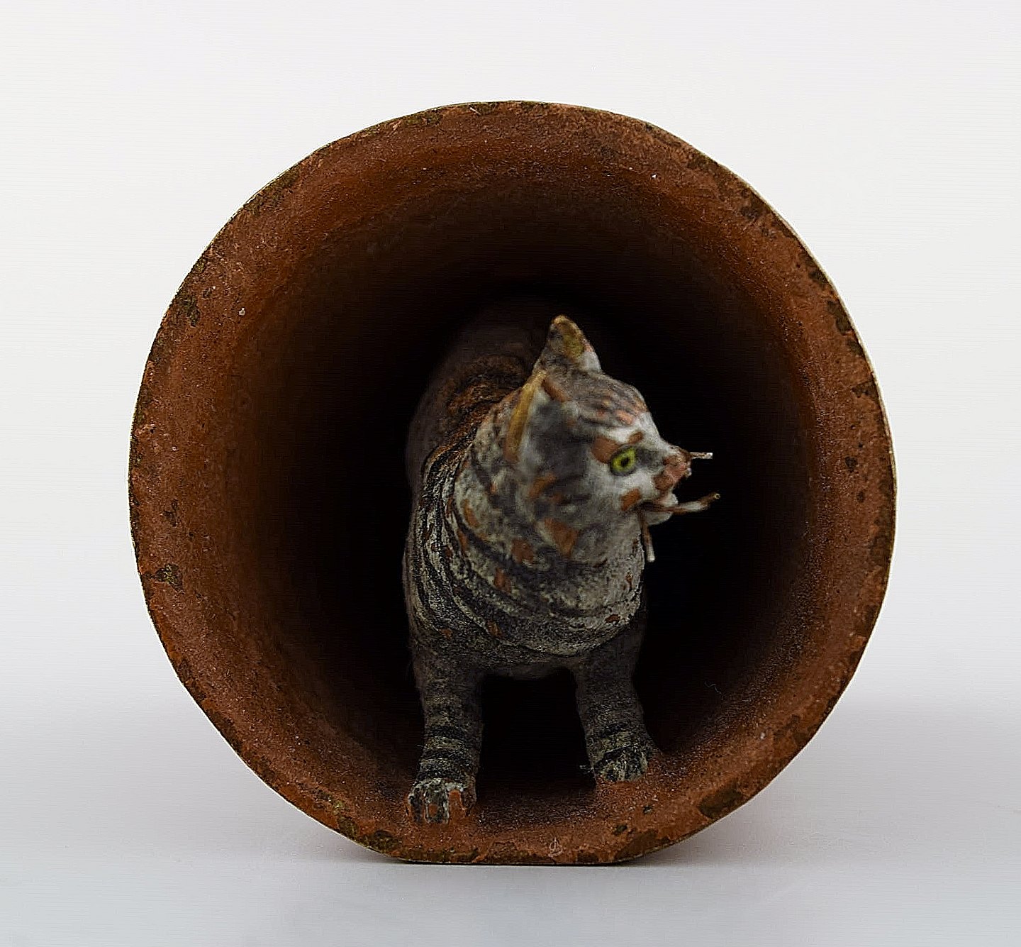 Vienna bronze, cat in a bucket, bronze figure of high quality.