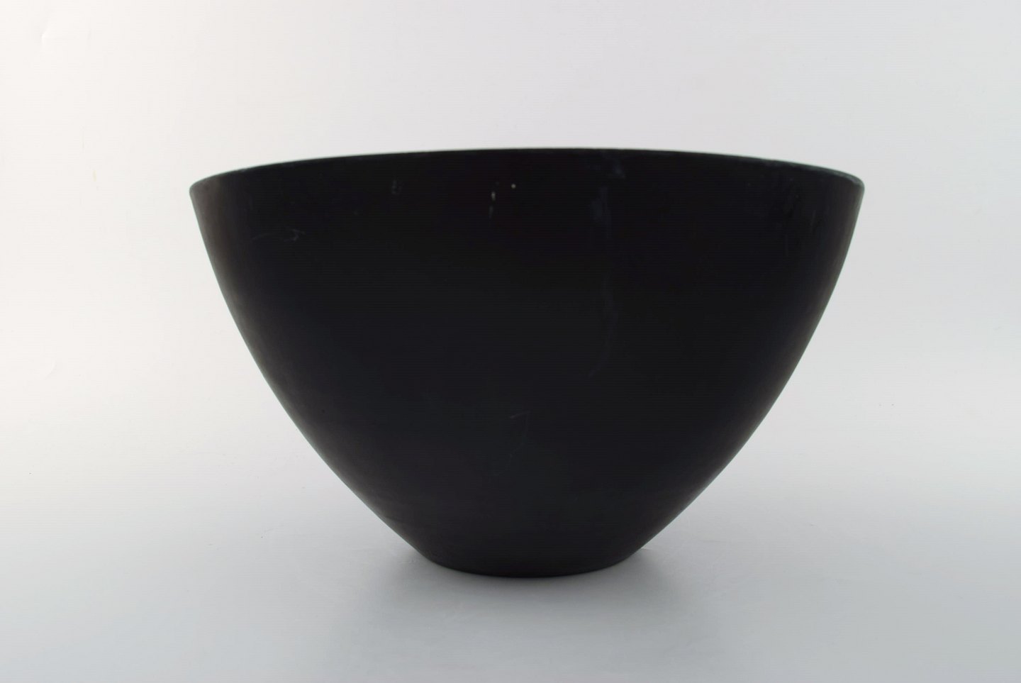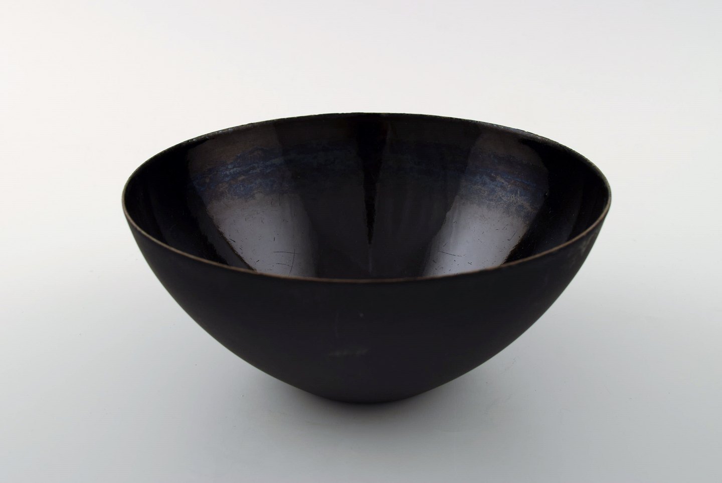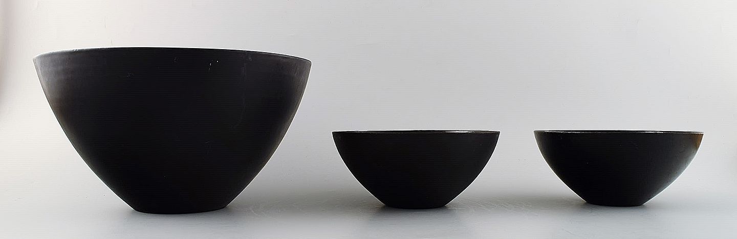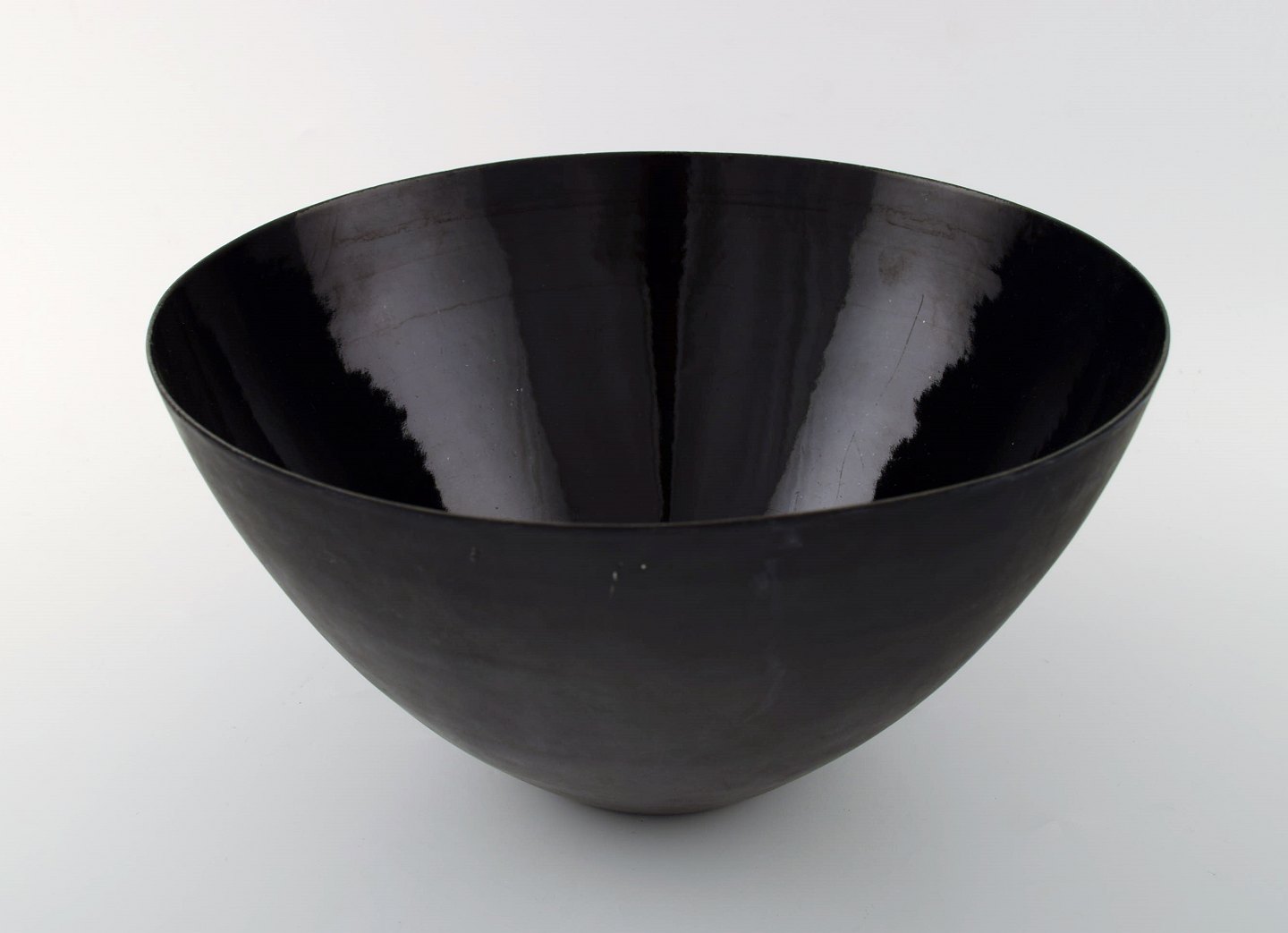 3 Krenit bowls by Herbert Krenchel. Black metal and black enamel. 1970s. The bowls measures 25 cm. X 14.5 cm. And 16 cm. X 7.5 cm. In perfect condition. Stamped. Krenit, Denmark.