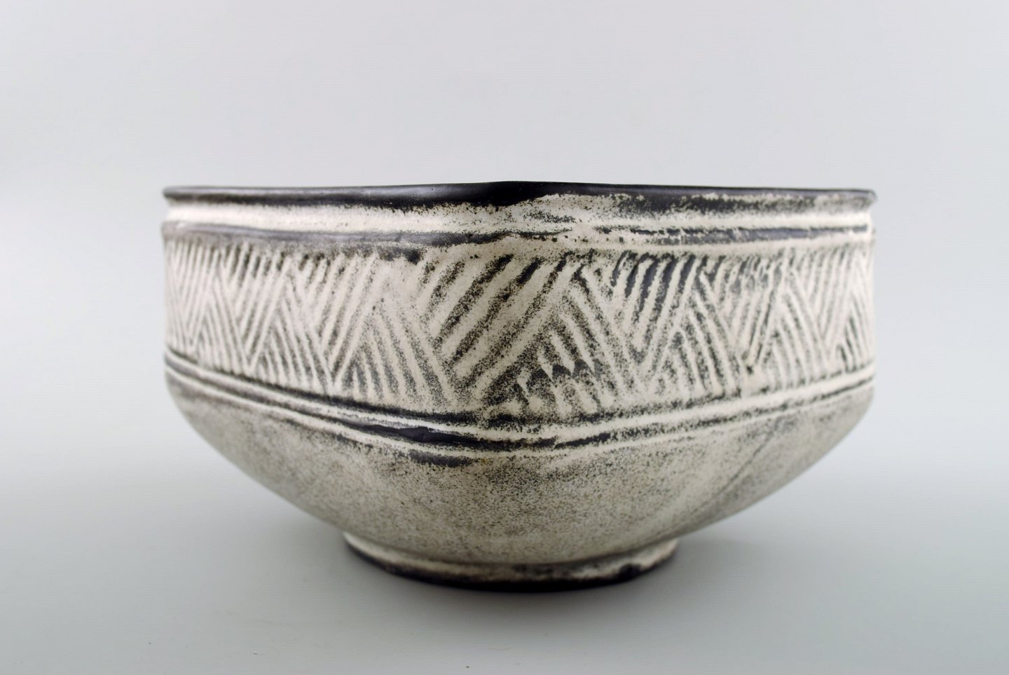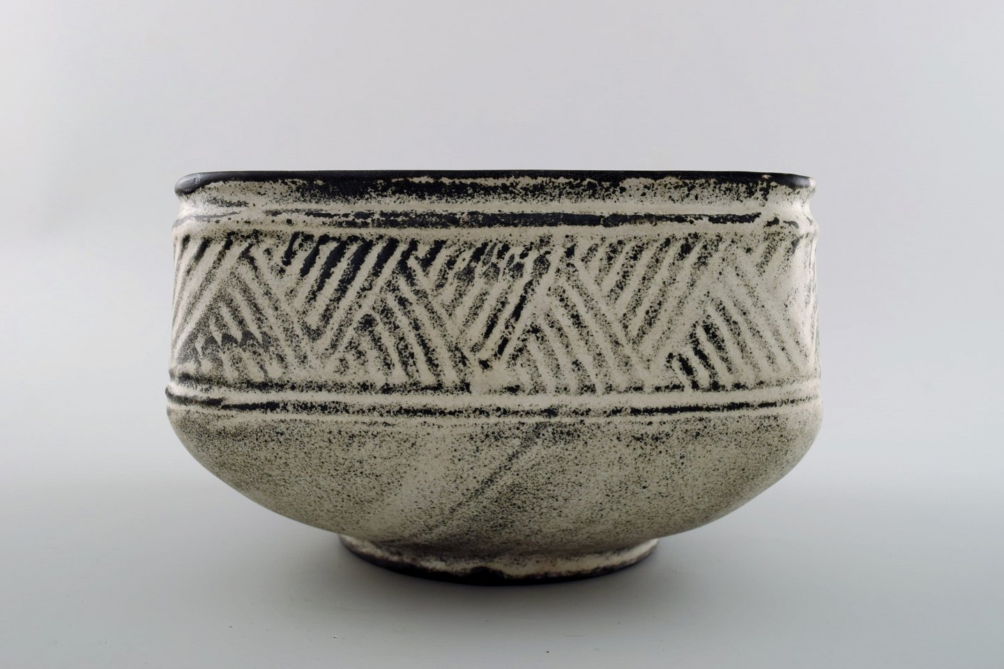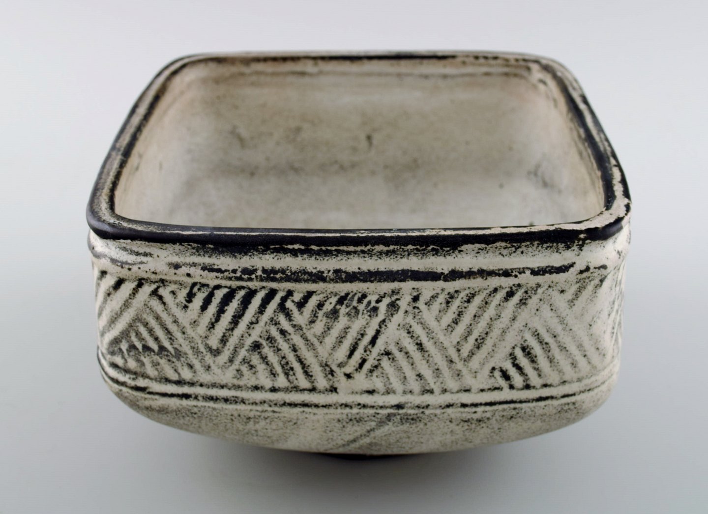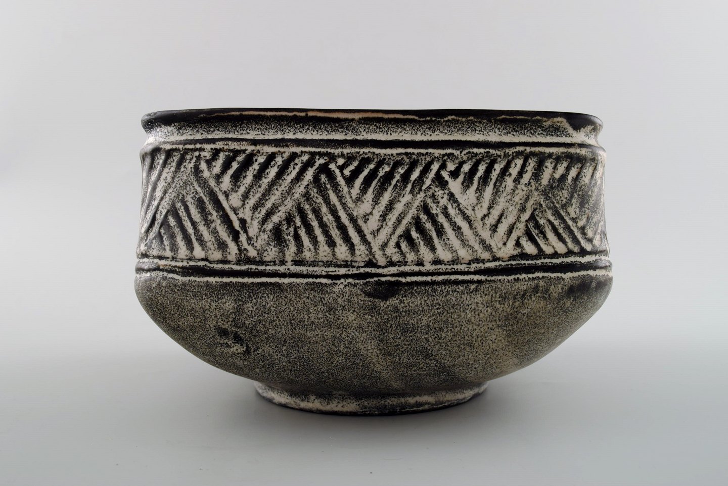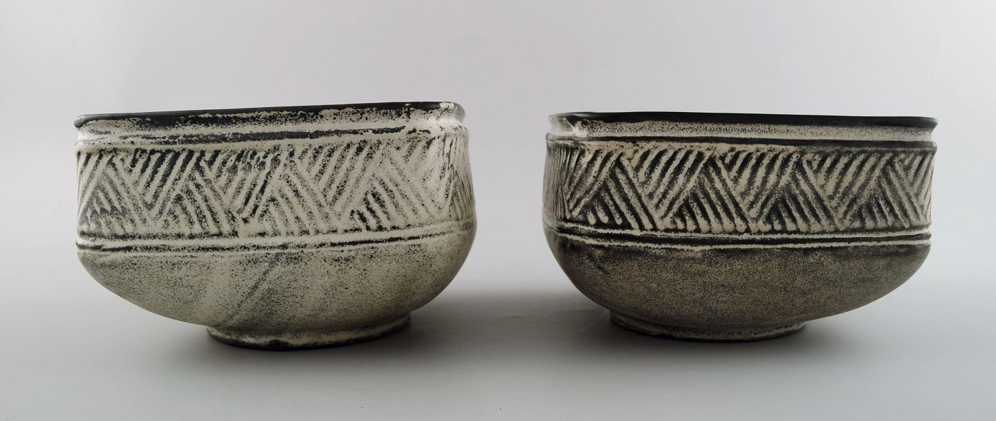 Kähler, HAK, a pair of glazed stoneware bowls / flowerpots. Nils Kähler. 1960s. Gray black double glaze. In perfect condition. Stamped. Measures 17 cm. X 10 cm. X 2 cm.