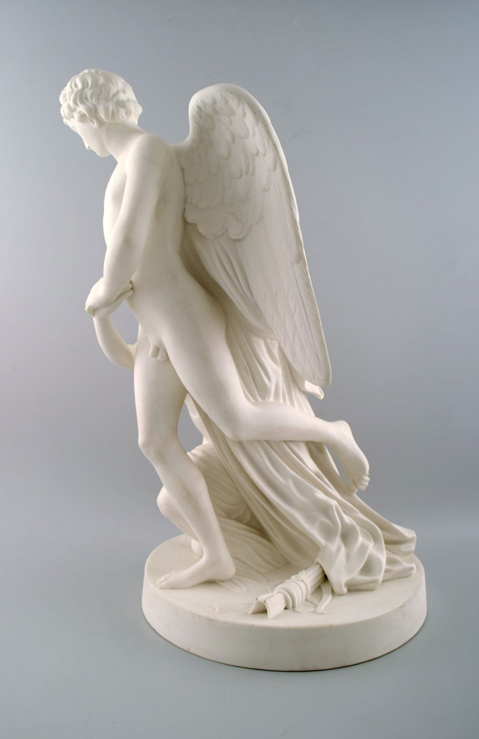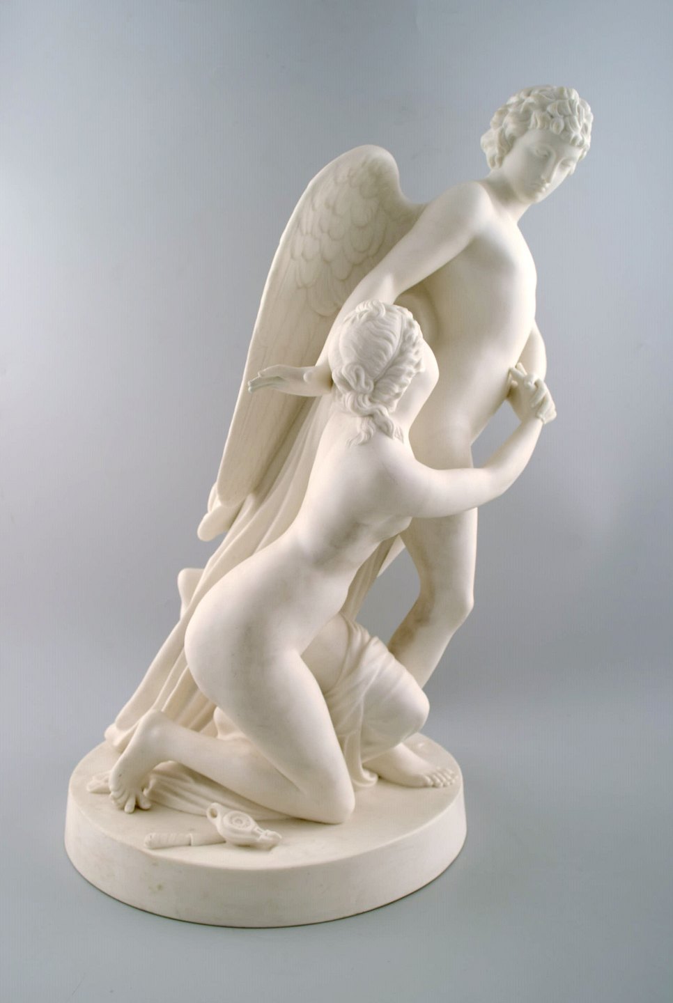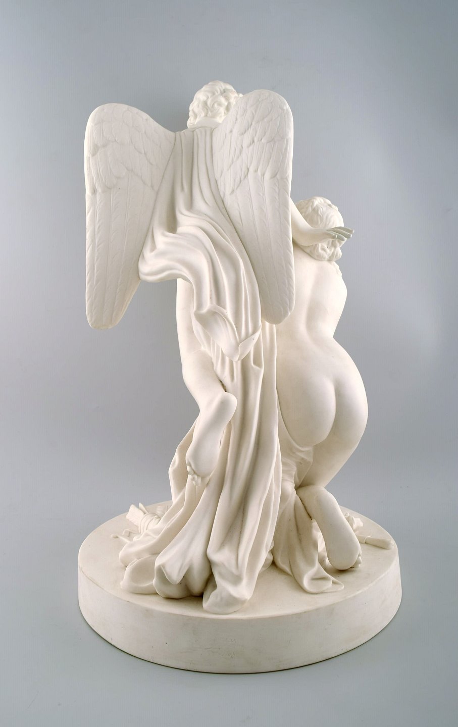 Klassisk skulptur i biscuit på sokkel, Gustavsberg, sent 1800-tallet. Måler 48 cm. x 25 cm. I perfekt stand. Stemplet. Gustavsberg 91.