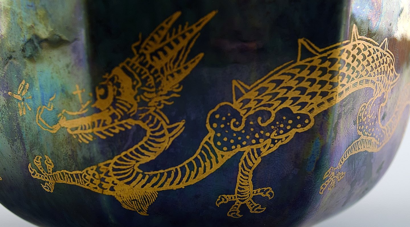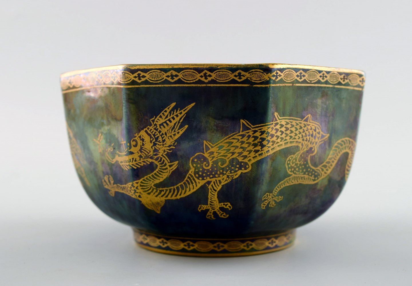 Wedgwood Fairy Luster Bowl in Dragon Pattern. Measures : 12 cm. x 7 cm. In perfect condition. Stamped.