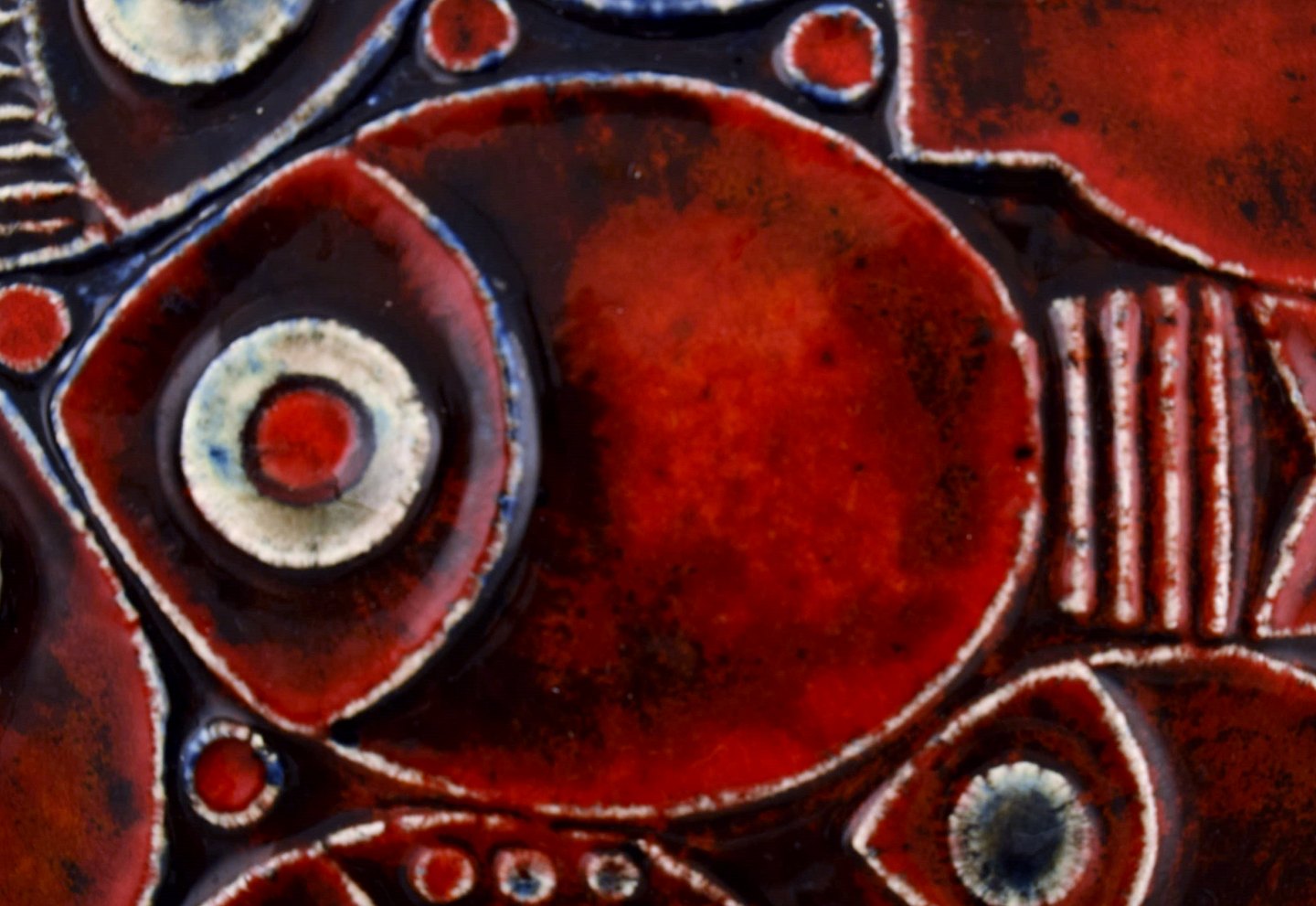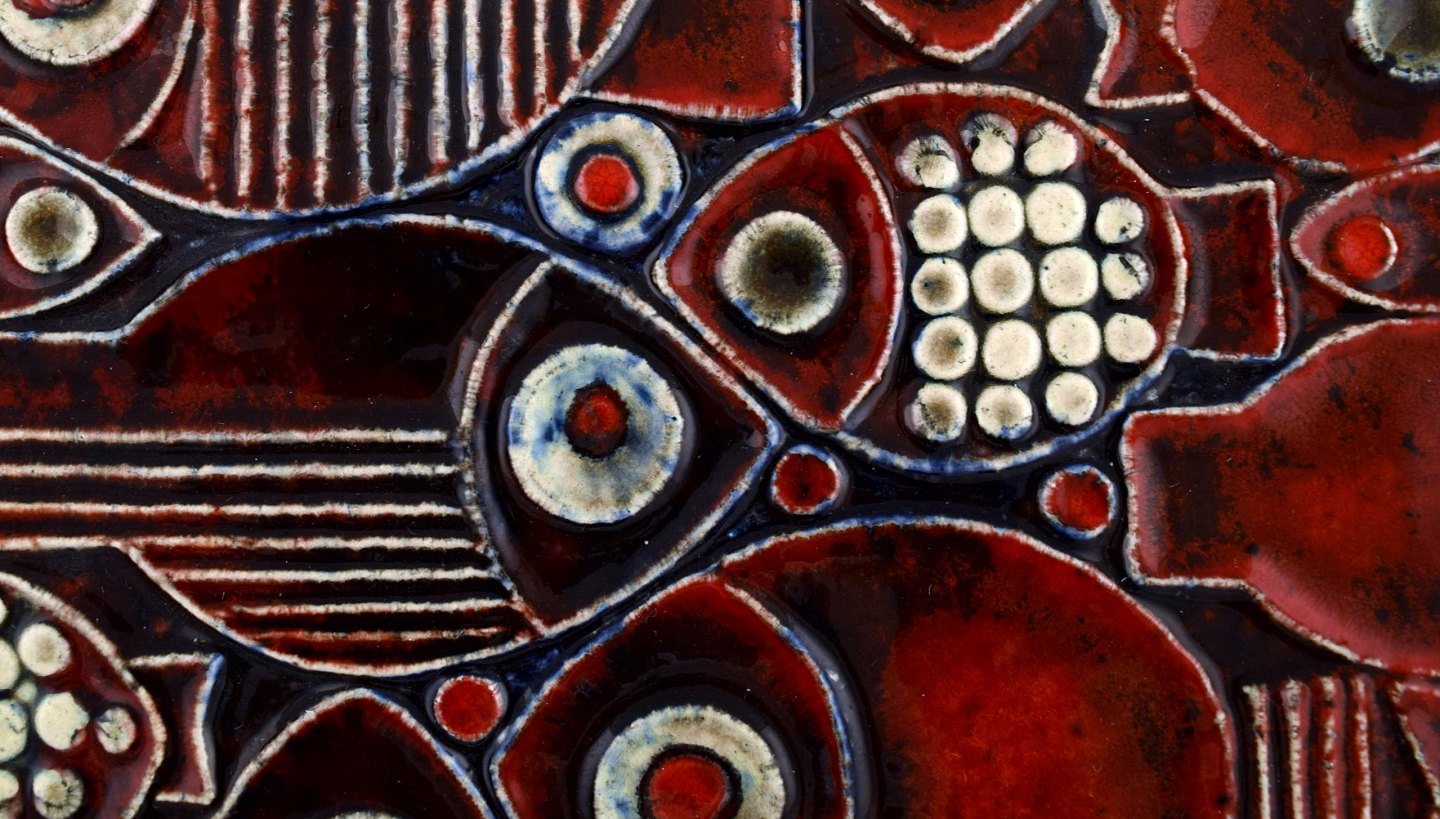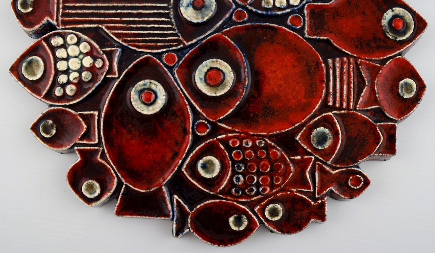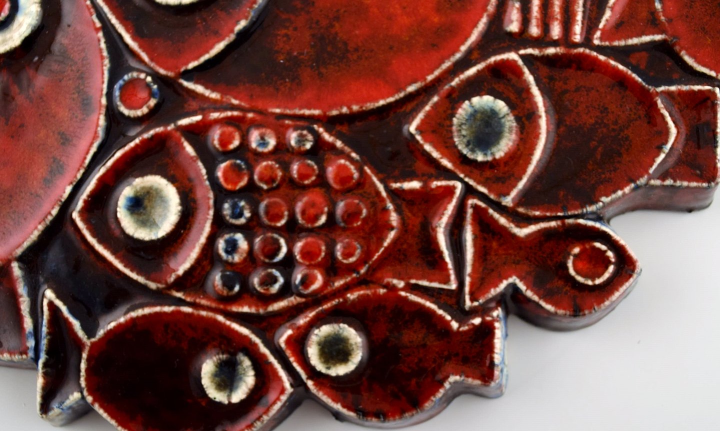 BRITT-LOUISE SUNDELL, wall relief, Gustavsberg, stoneware, fish in relief. Beautiful red glaze. Marked: B.L Sundell, Gustavsberg. Measures: 28 cm. X 28 cm. In perfect condition.