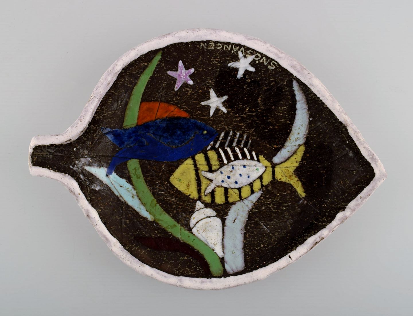Anna-Lisa Thomson for Upsala-Ekeby ceramic bowl decorated with fish. Sweden mid. 20 c. In perfect condition. Measures 33 cm. X 25 cm. X 5 cm. Stamped: UE Alt.