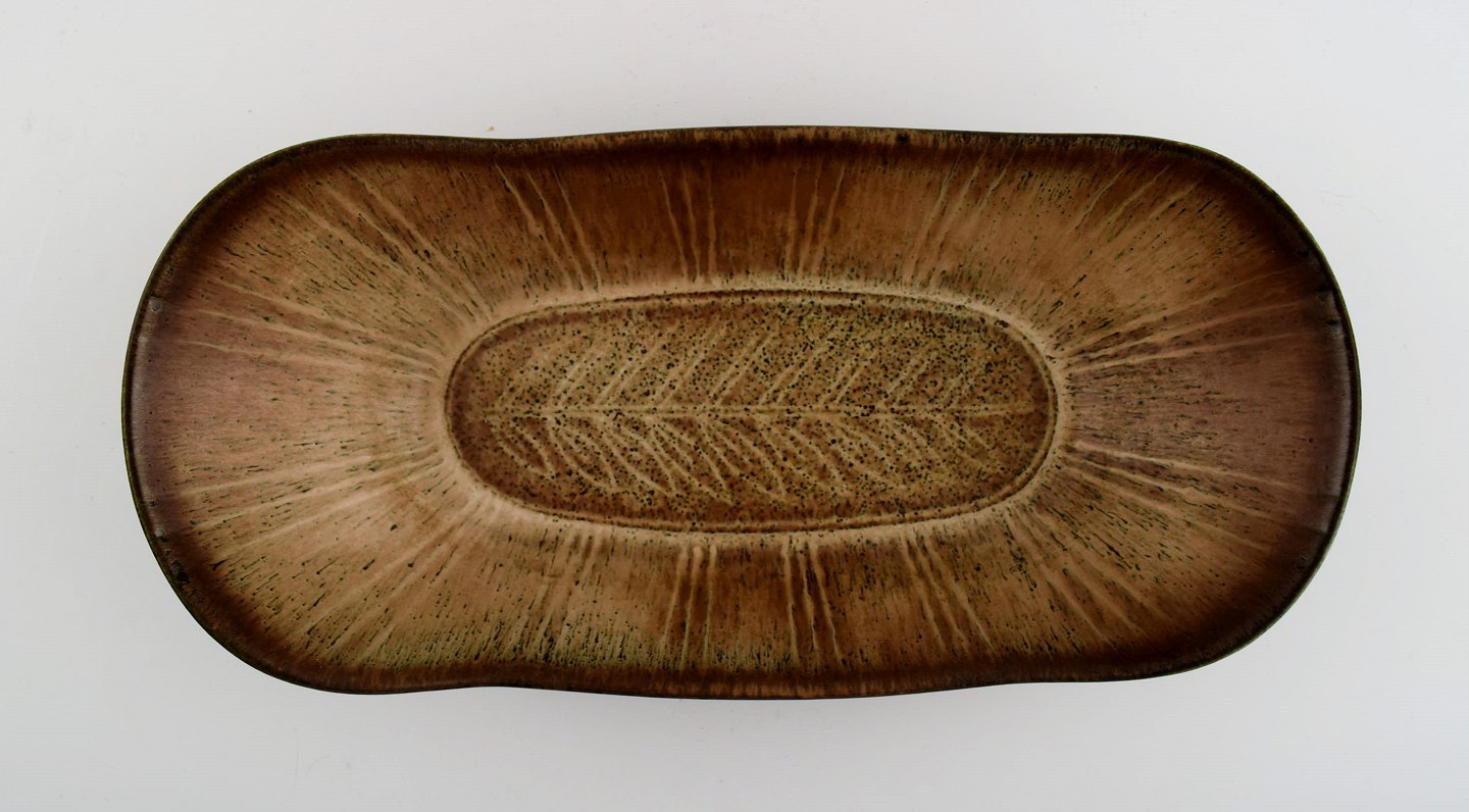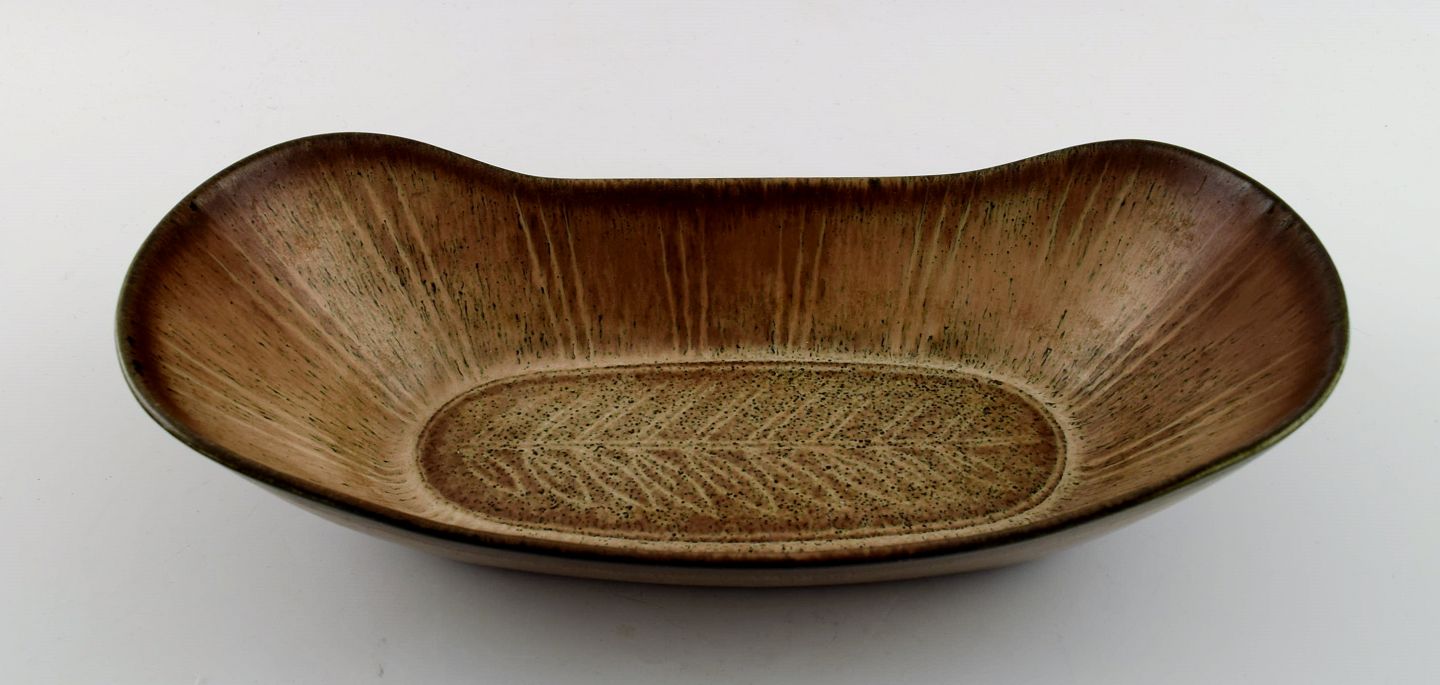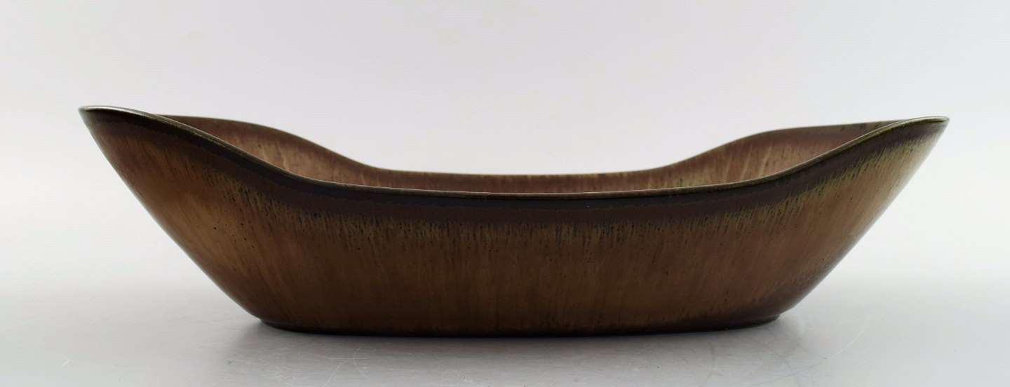 Rörstrand/Rørstrand Gunnar Nylund stor keramikskål. Måler 32 cm. x 15,5 cm. x 8 cm. Flot glasur. Stemplet. I perfekt stand. 1. sortering.