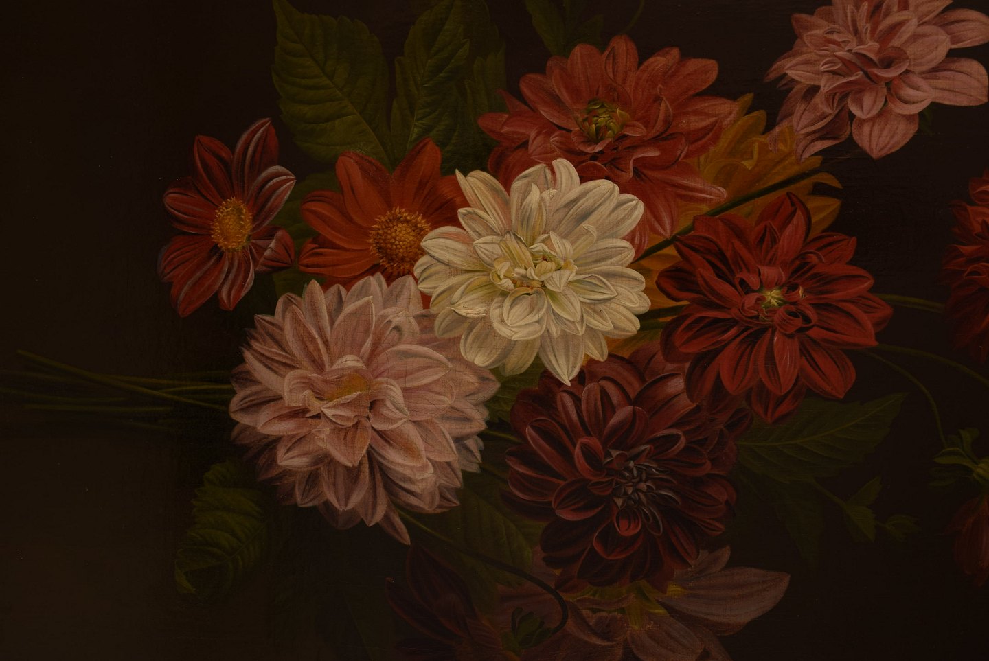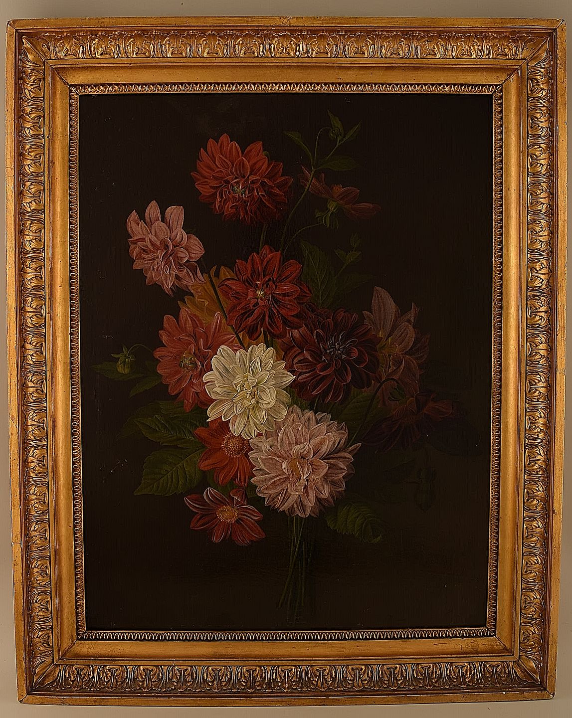 Måler : 57,5 cm. x 42,5 cm. Totalstørrelse inkl. rammen 70,5 cm. x 56 cm.