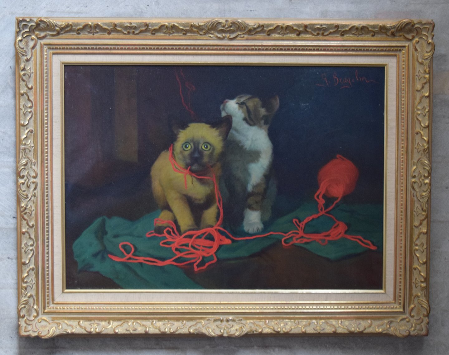 Oil on canvas. Two kittens.