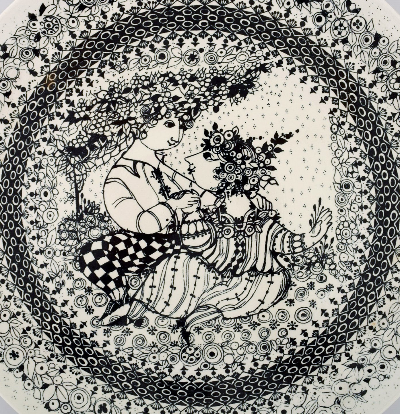 To store Årstiderne fajancefade fra Nymølle fabrikken, designet af Bjørn Wiinblad. Sommer og forår.