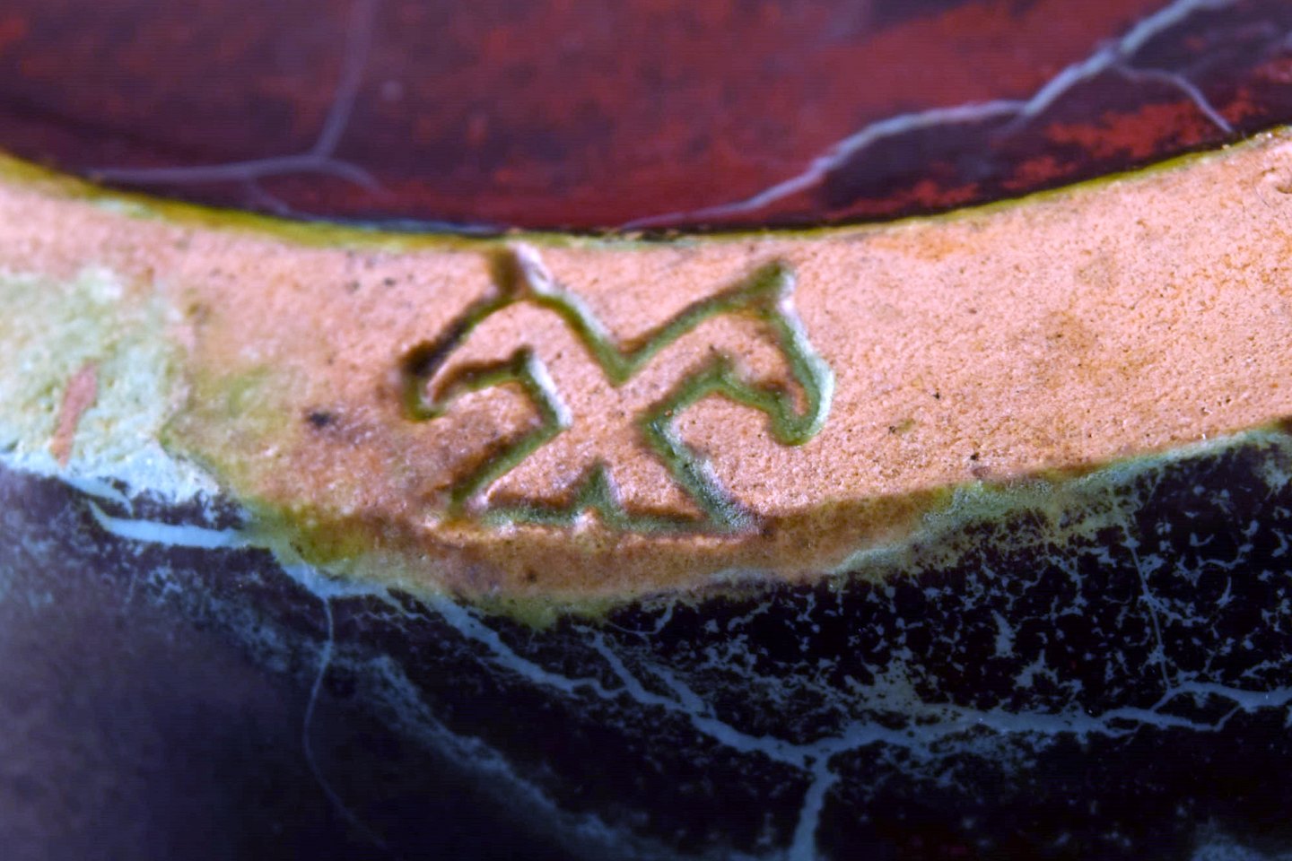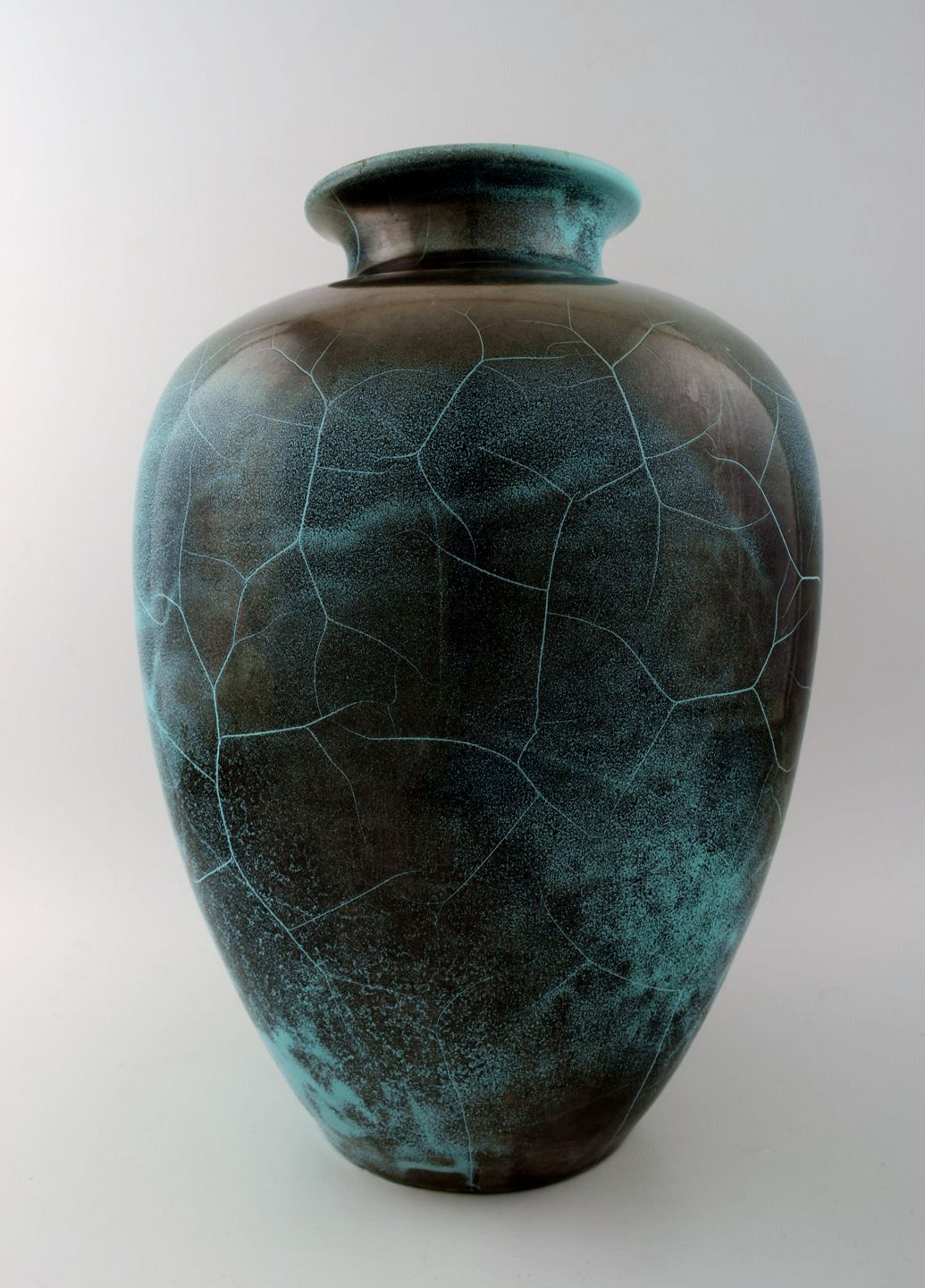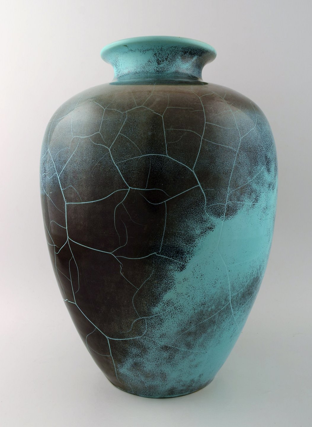 Richard Uhlemeyer, German ceramist. Large floor vase, beautiful glaze in dark shades. Germany, 1940s. Measures 43 x 24 cm. In perfect condition. Stamped.