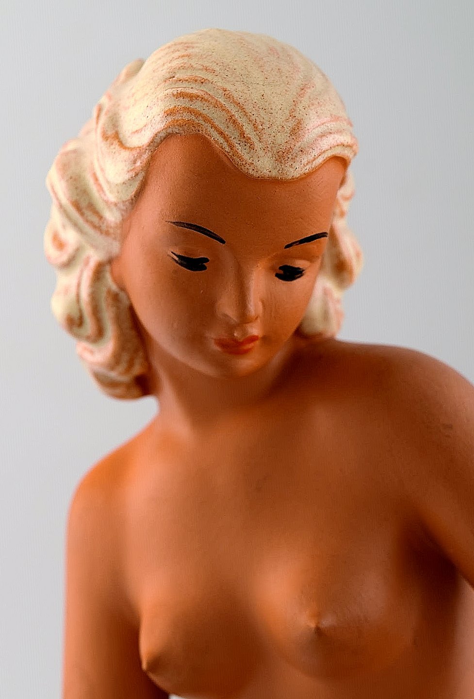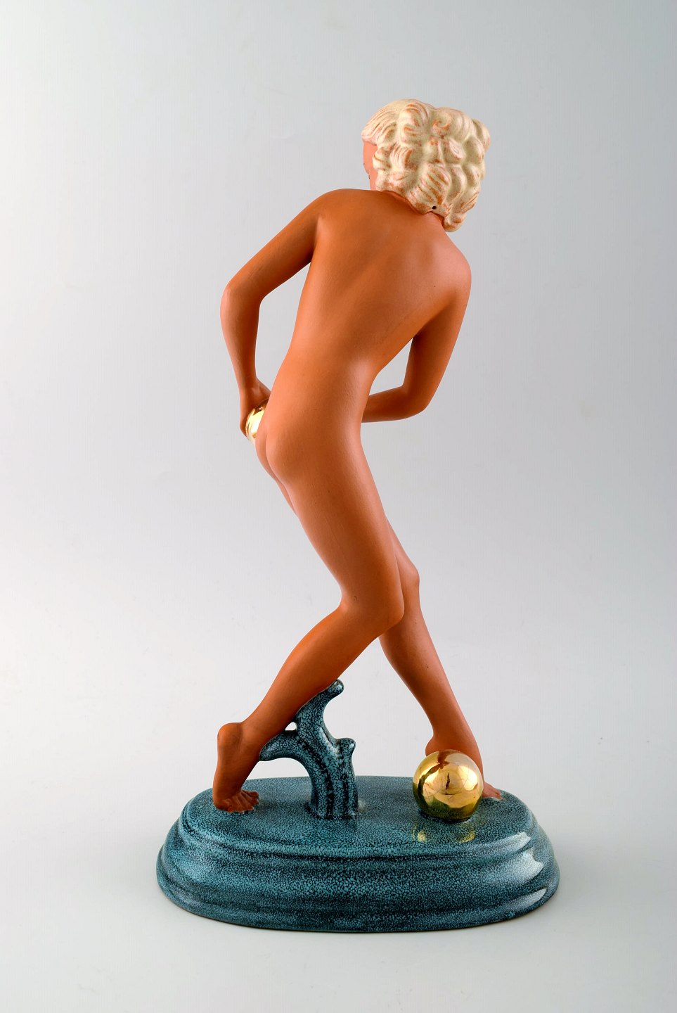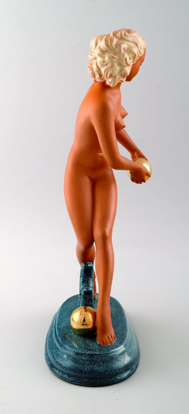 Art Deco Goldschneider, nude woman, figure in porcelain. Overglaze. Beautiful figure, approx. 1940s. Measures: 30 cm. X 16 cm. In perfect condition. Stamp No. 745.G.