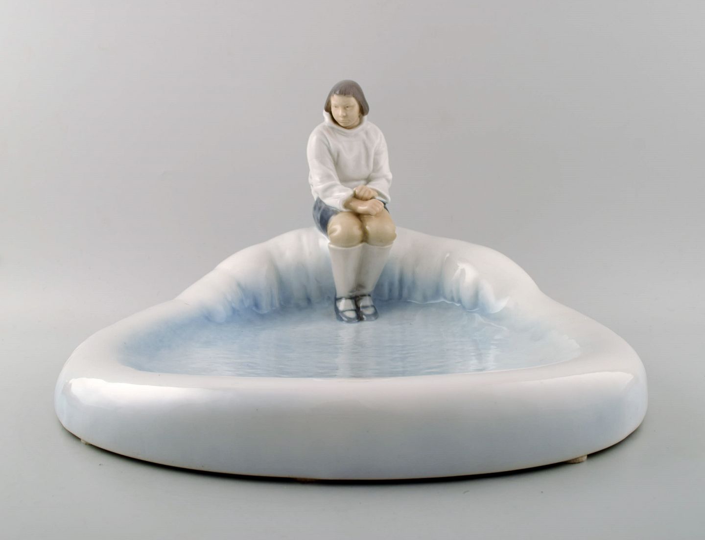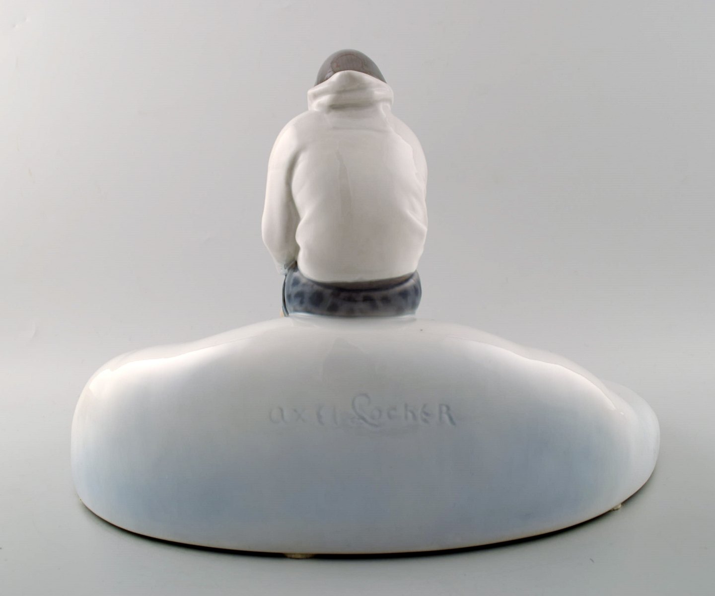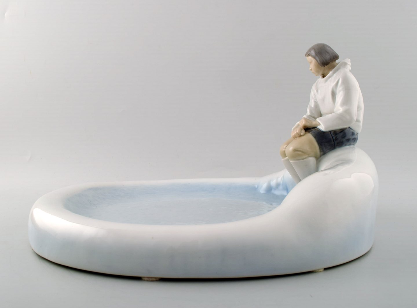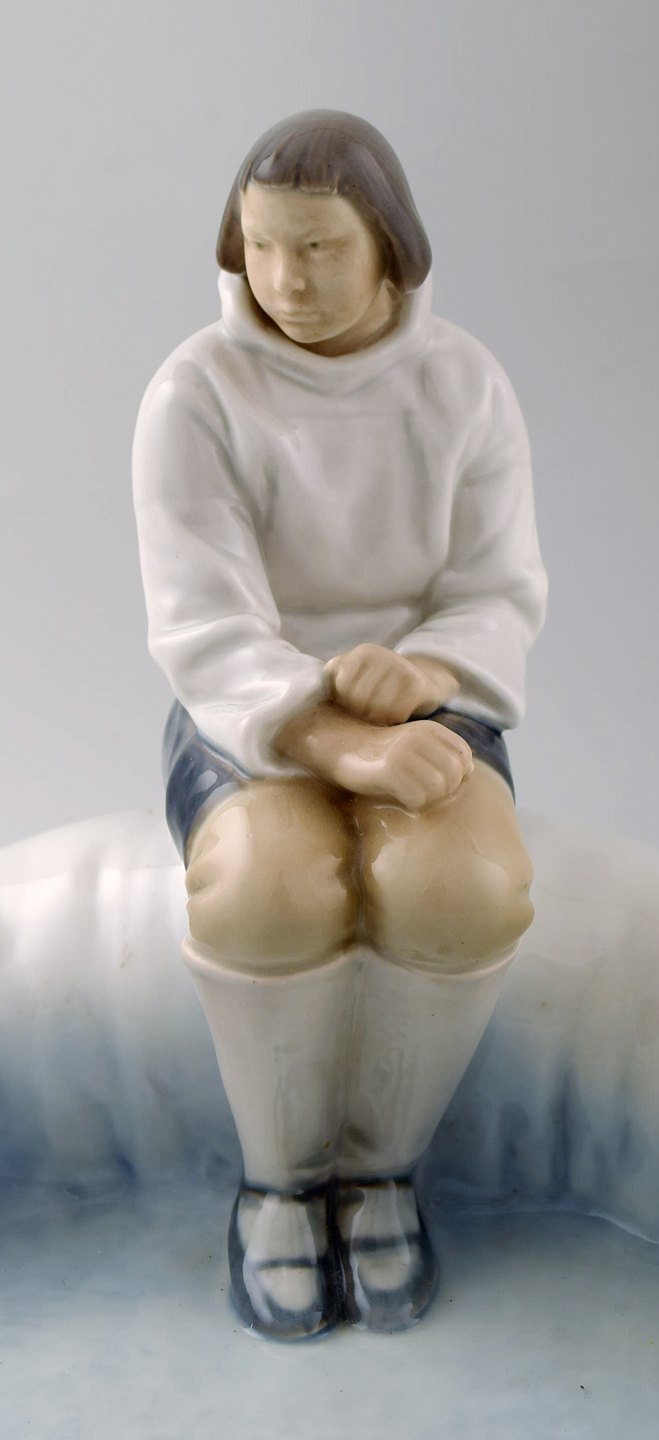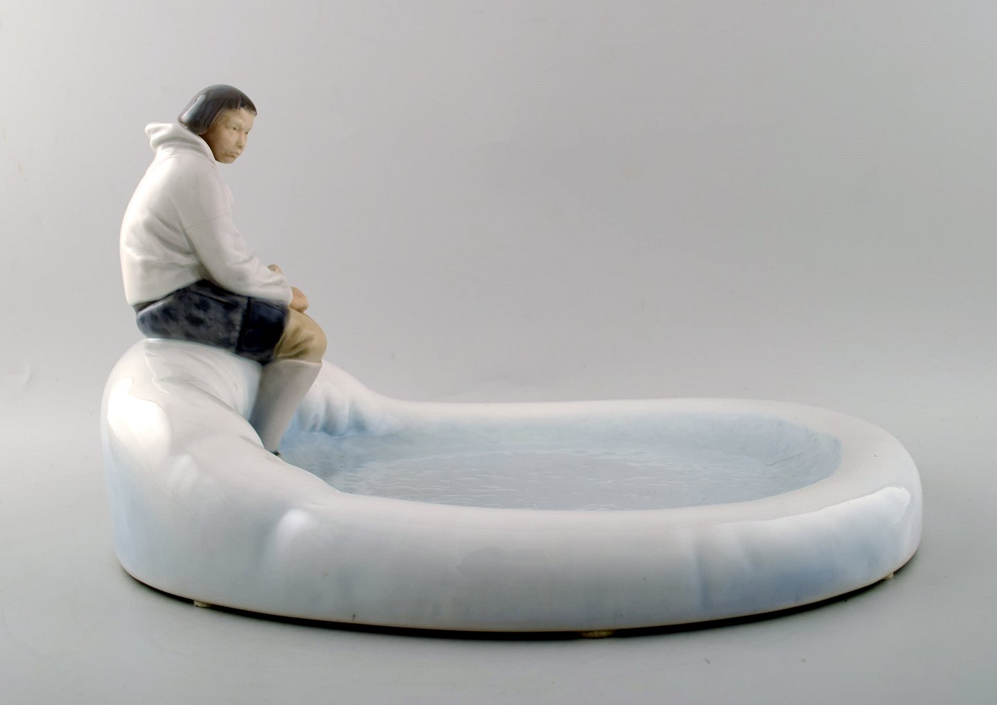 Bing & Grøndahl B&G 2253 Eskimo på fad. Axel Locher. Den store udgave. Måler : 35 cm. x 33 cm. x 21 cm. I perfekt stand. 1. sortering.