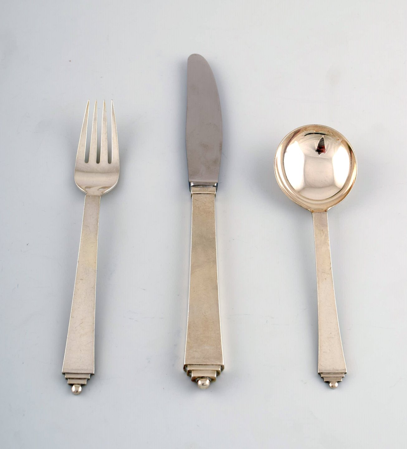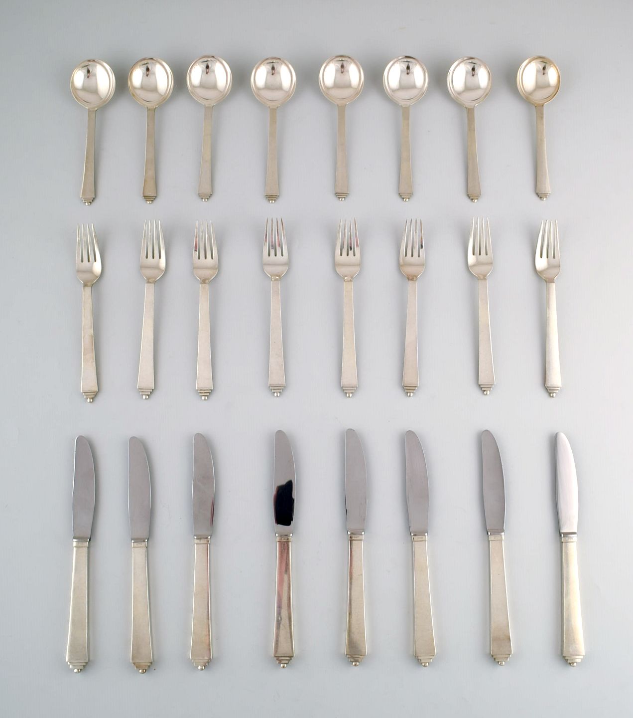 Georg Jensen Pyramide middagsservice af sterling sølv til otte personer.