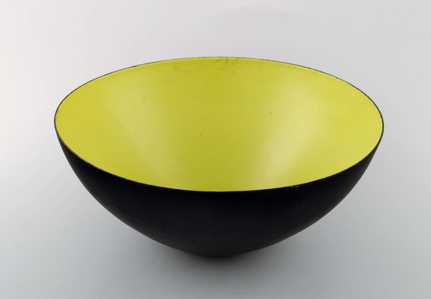 Large Krenit Bowl by Herbert Krenchel. Black metal and mint green enamel. 1970s. In very good condition, no chips or damage. Measures: 25 x 11 cm. Unstamped.