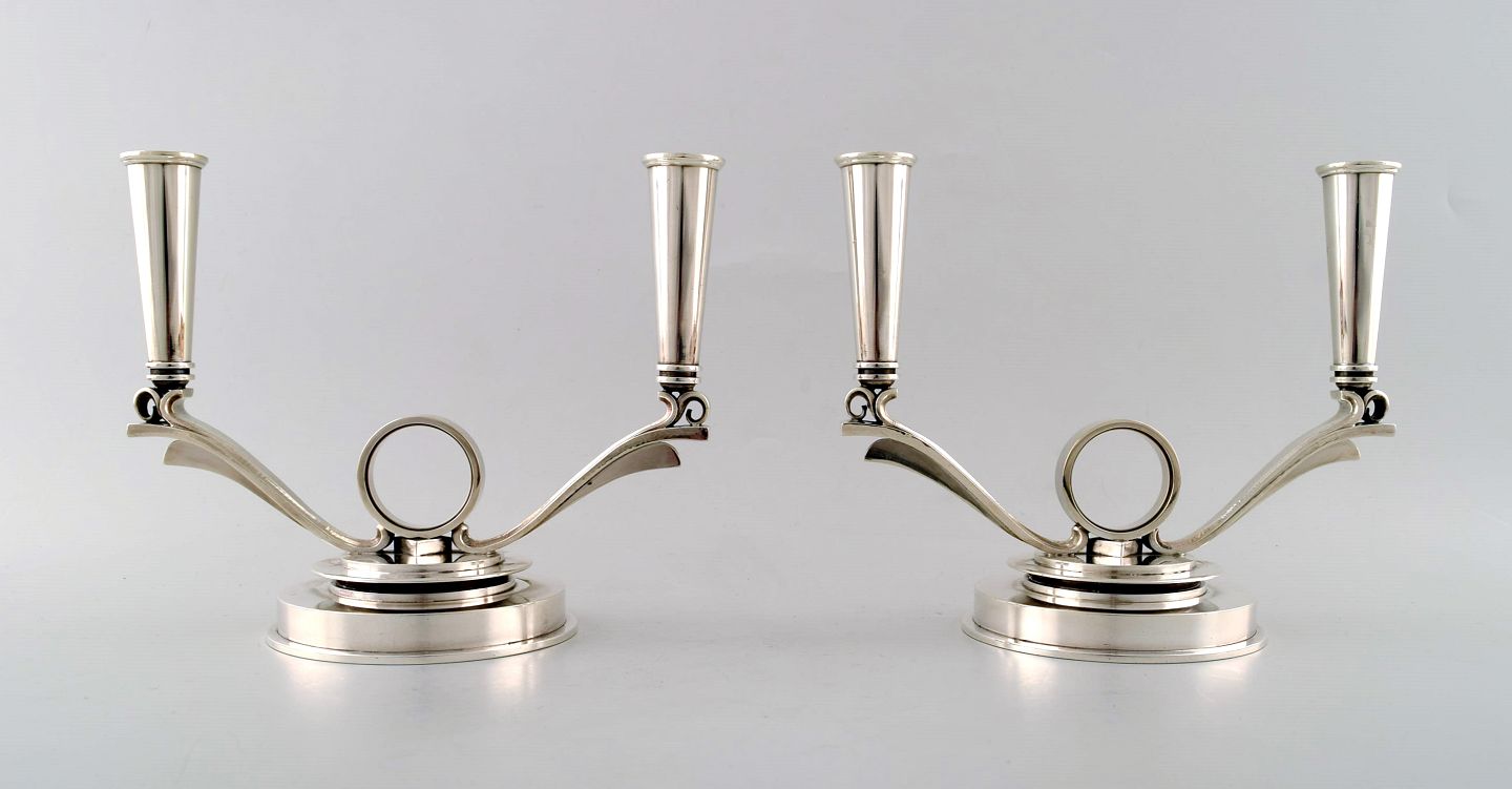 Georg Jensen silver, Pyramid #630 B, two armed candleholders.