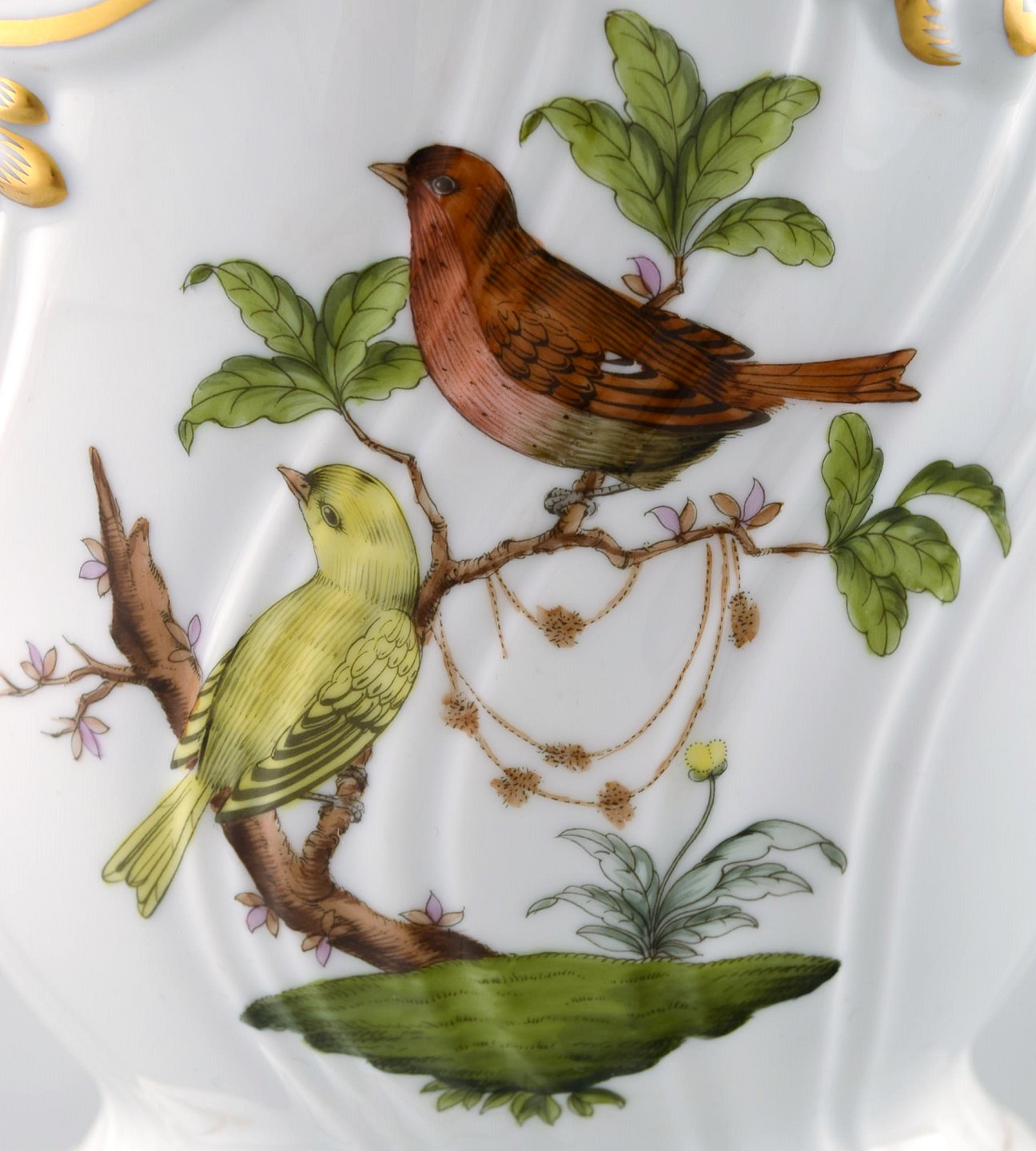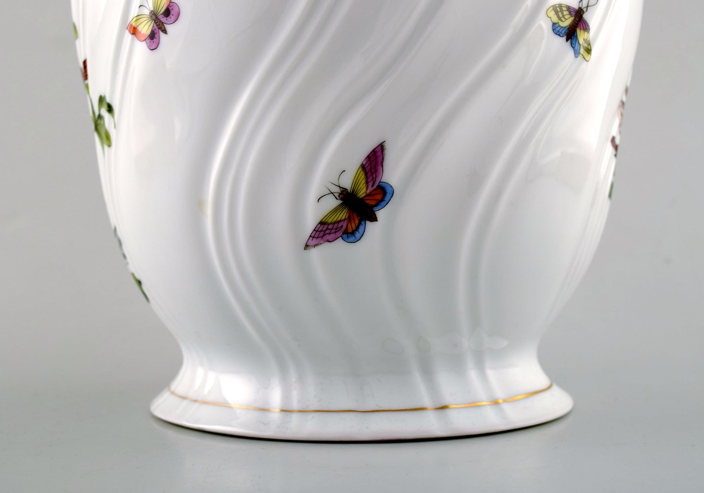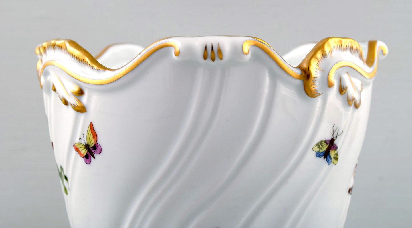 Herend, urtepotteskjuler/champagnekøler i porcelæn. Håndmalet med fugle og sommerfugle. I perfekt stand. Måler 20 cm. x 16 cm. Stemplet.