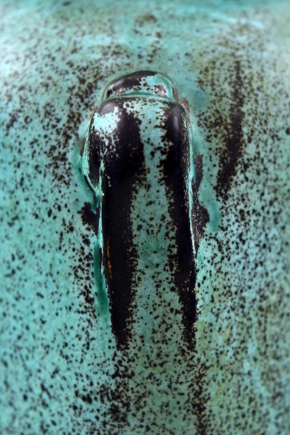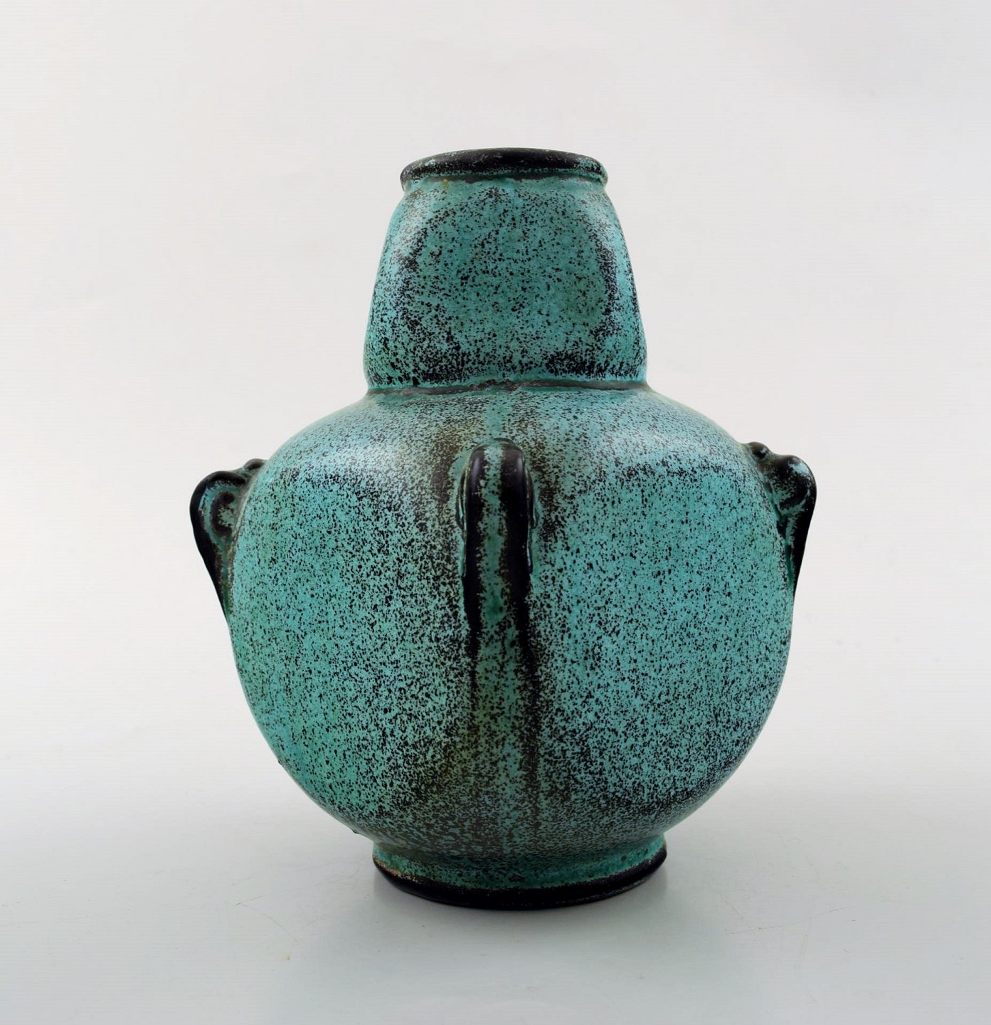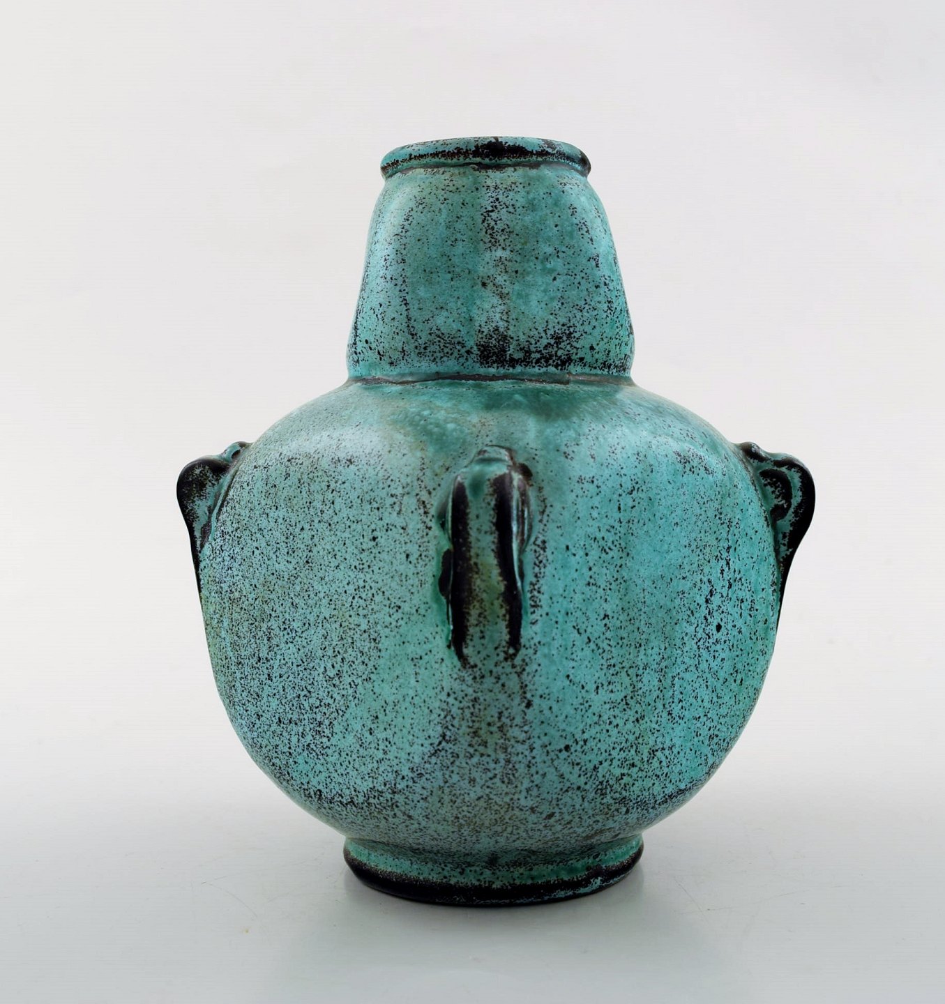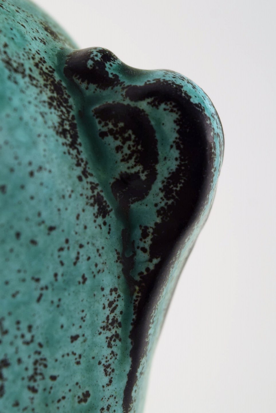 Svend Hammershoi for Kähler, Denmark, glazed stoneware art pottery vase, 1930s. Designed by Svend Hammershoi. Turquoise Green double glaze. Measures 13,5 x 9 cm. Marked. In perfect condition.