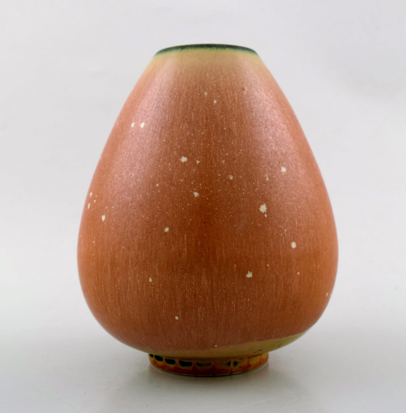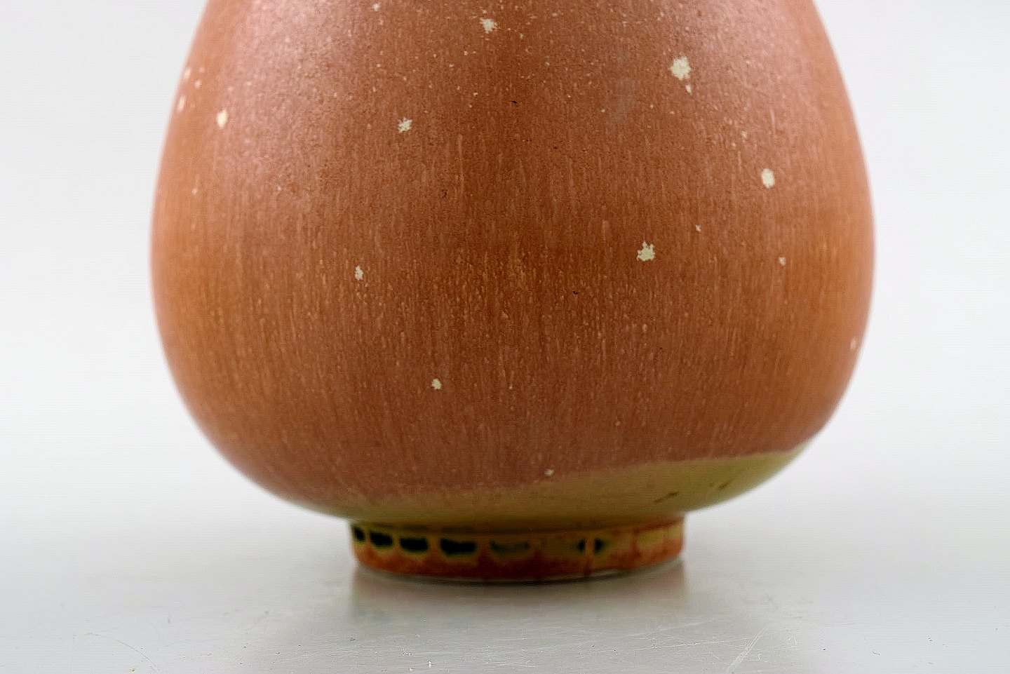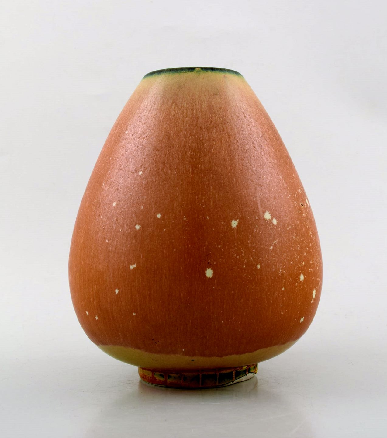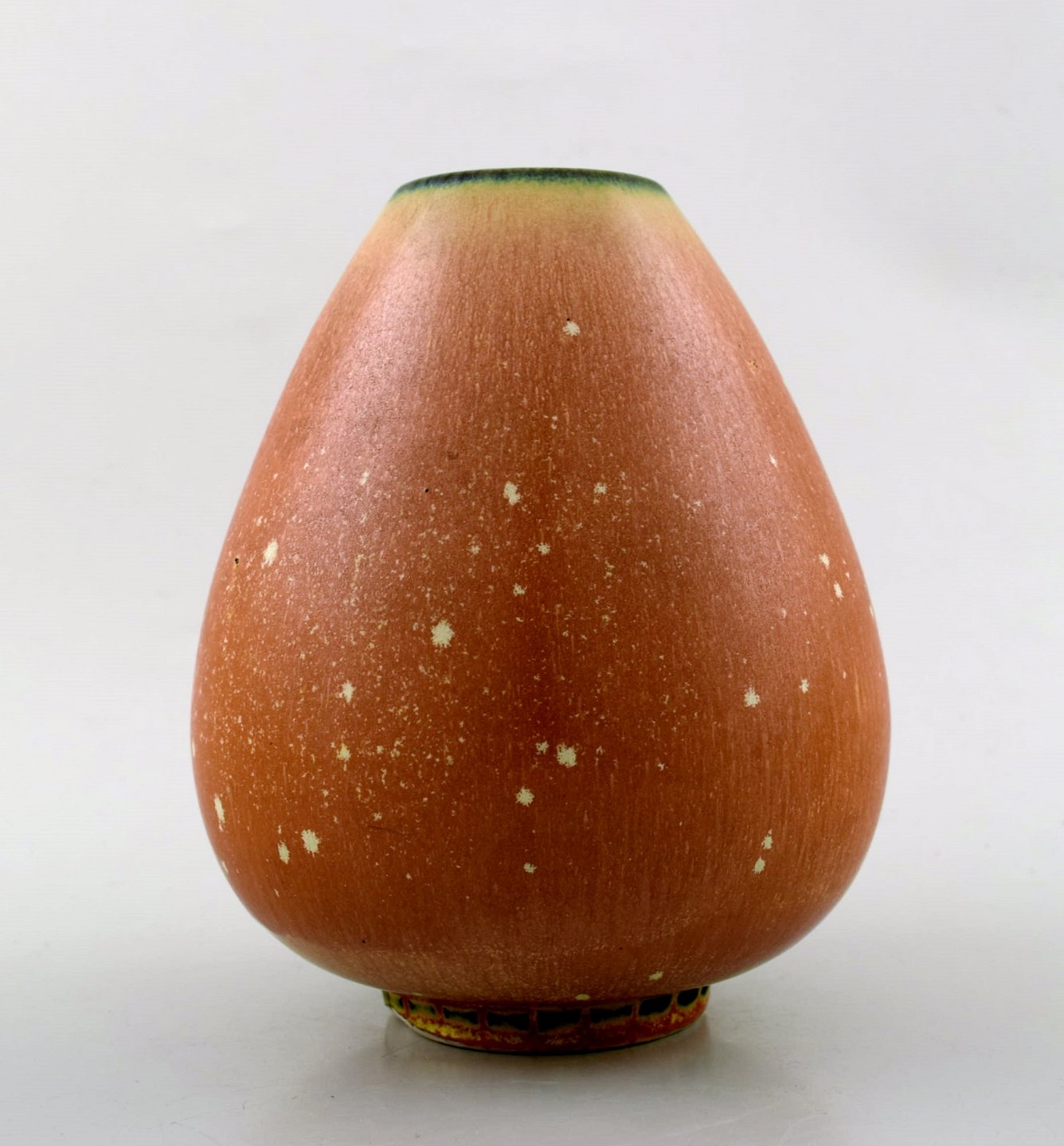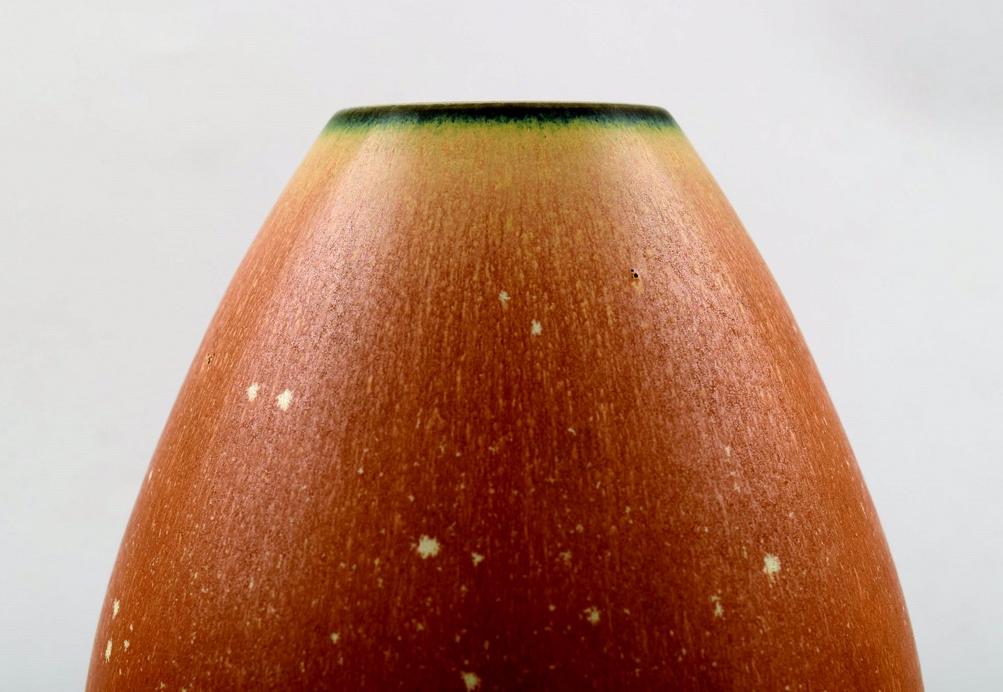 Rørstrand/Rörstrand stentøjsvase af Gunnar Nylund. 16 cm. høj. Diameter 15 cm. I perfekt stand. Flot glasur i brune nuancer. 2. sortering. Stemplet.