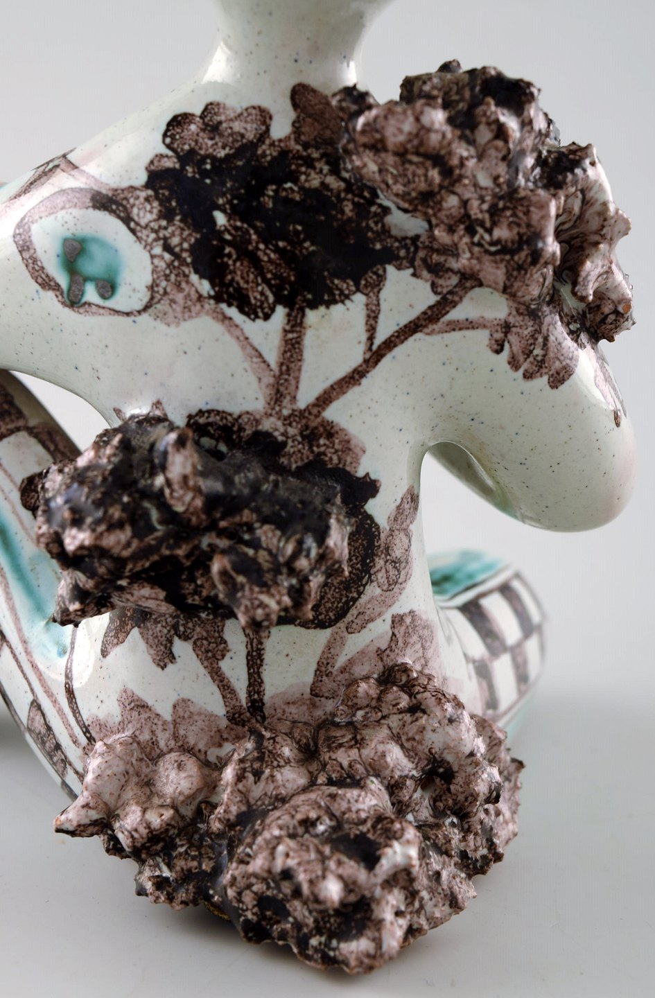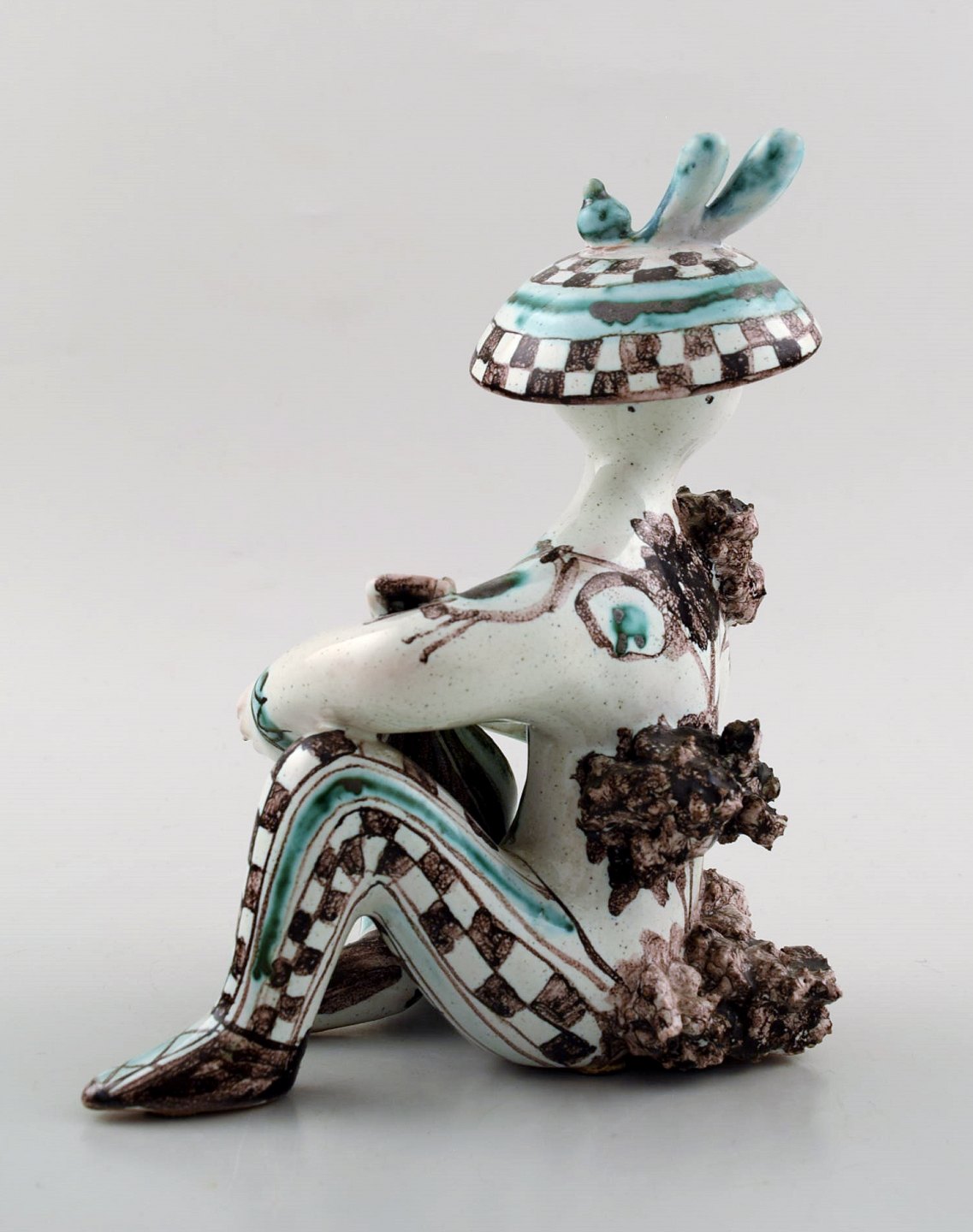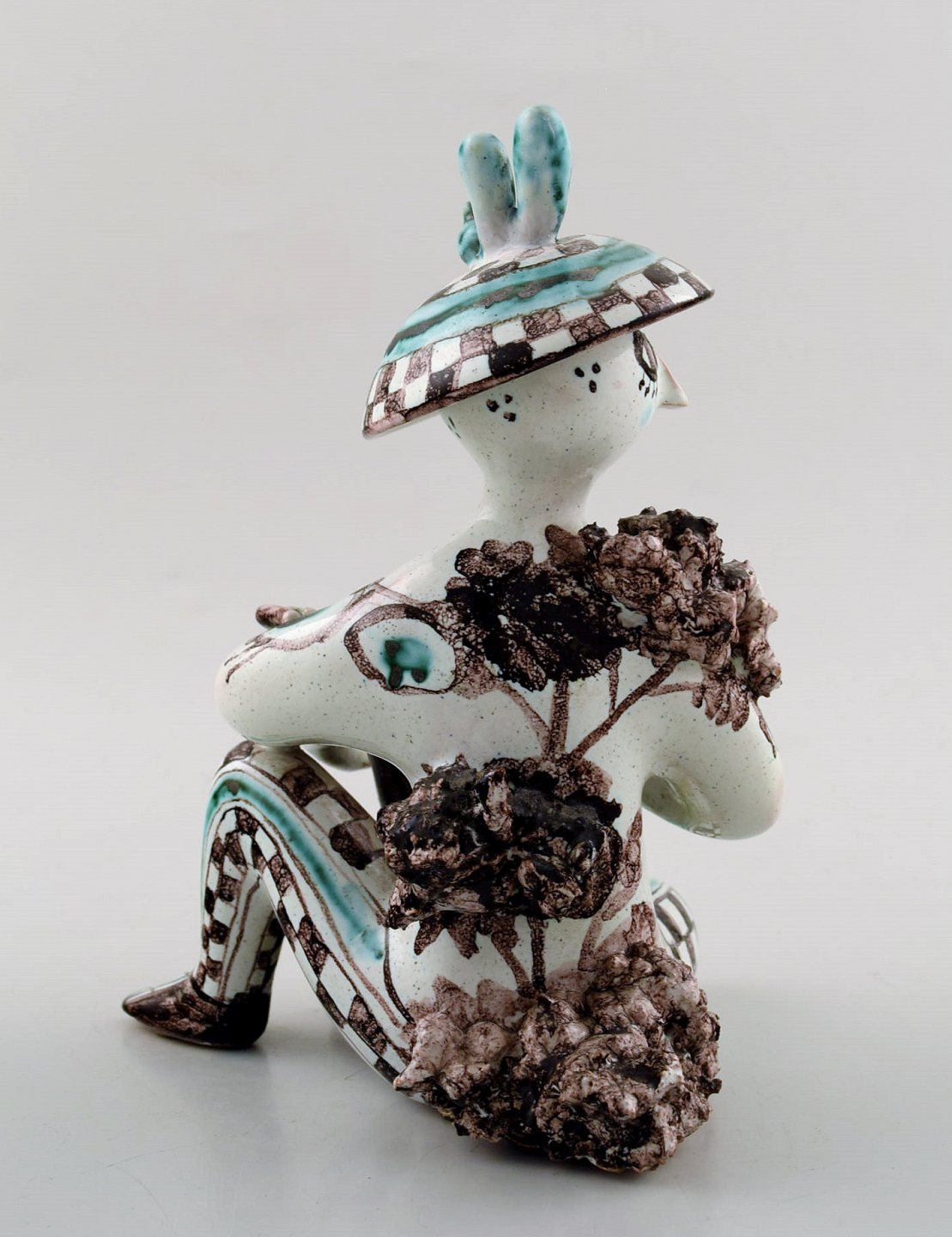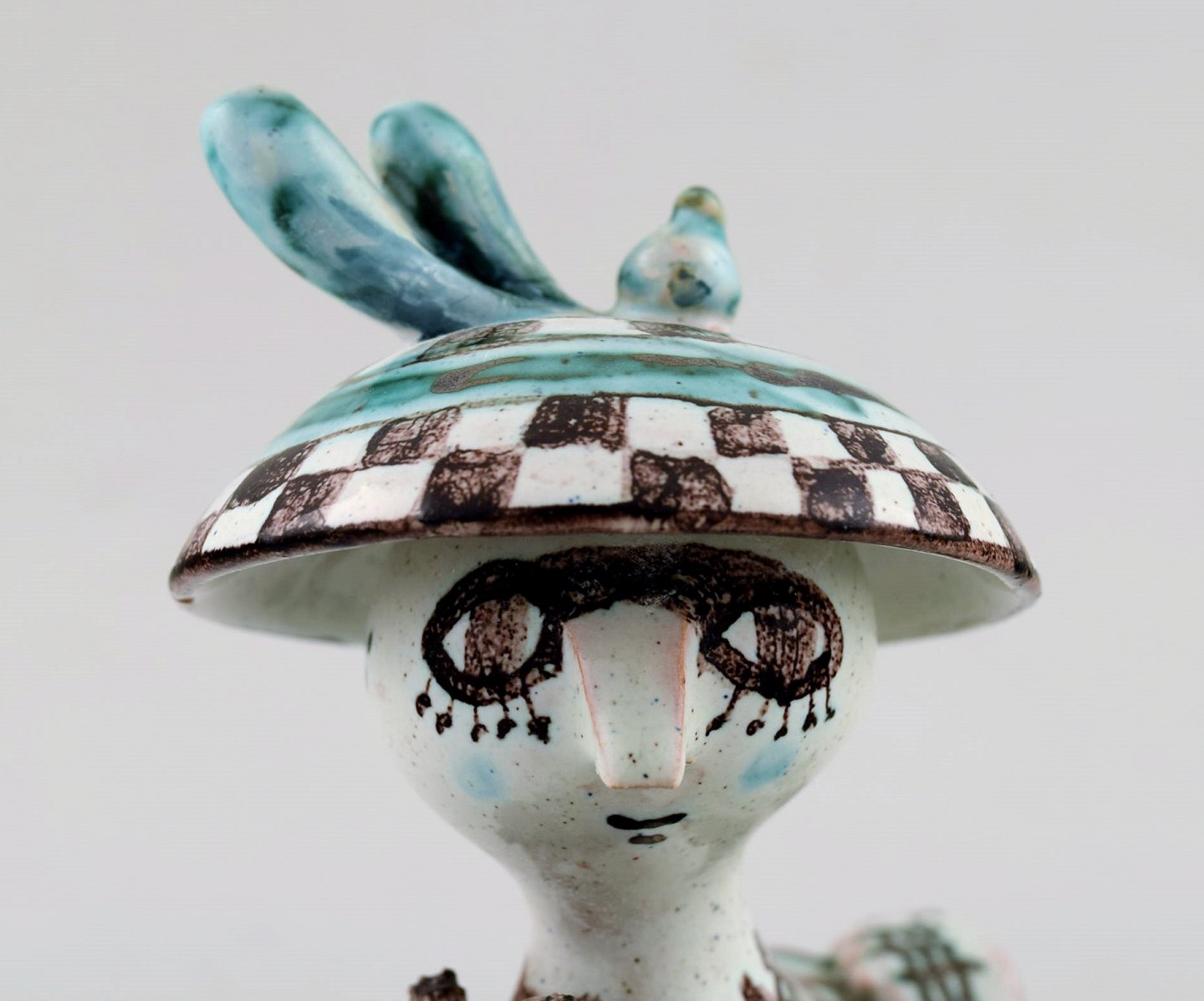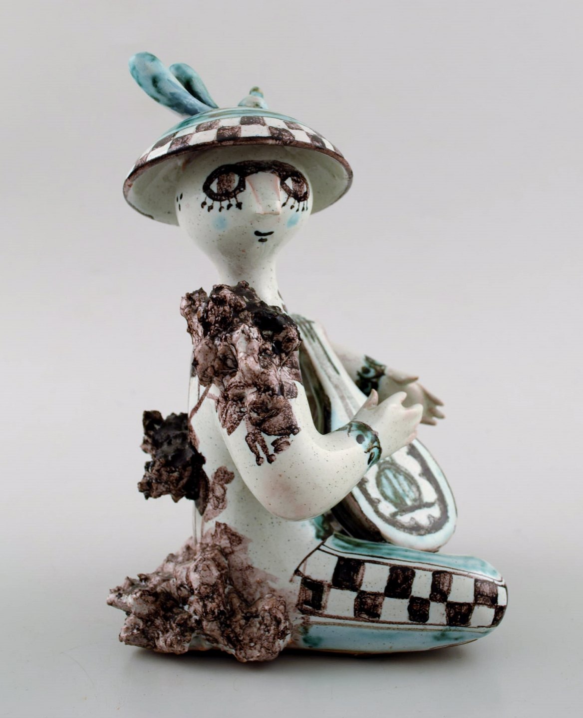 Sjælden Bjørn Wiinblad 1918-2006: Unika figur i flerfarvet keramik, lutspiller fra serien "musikanter".