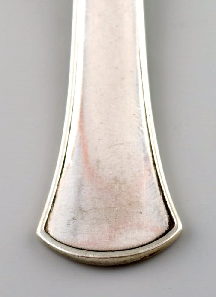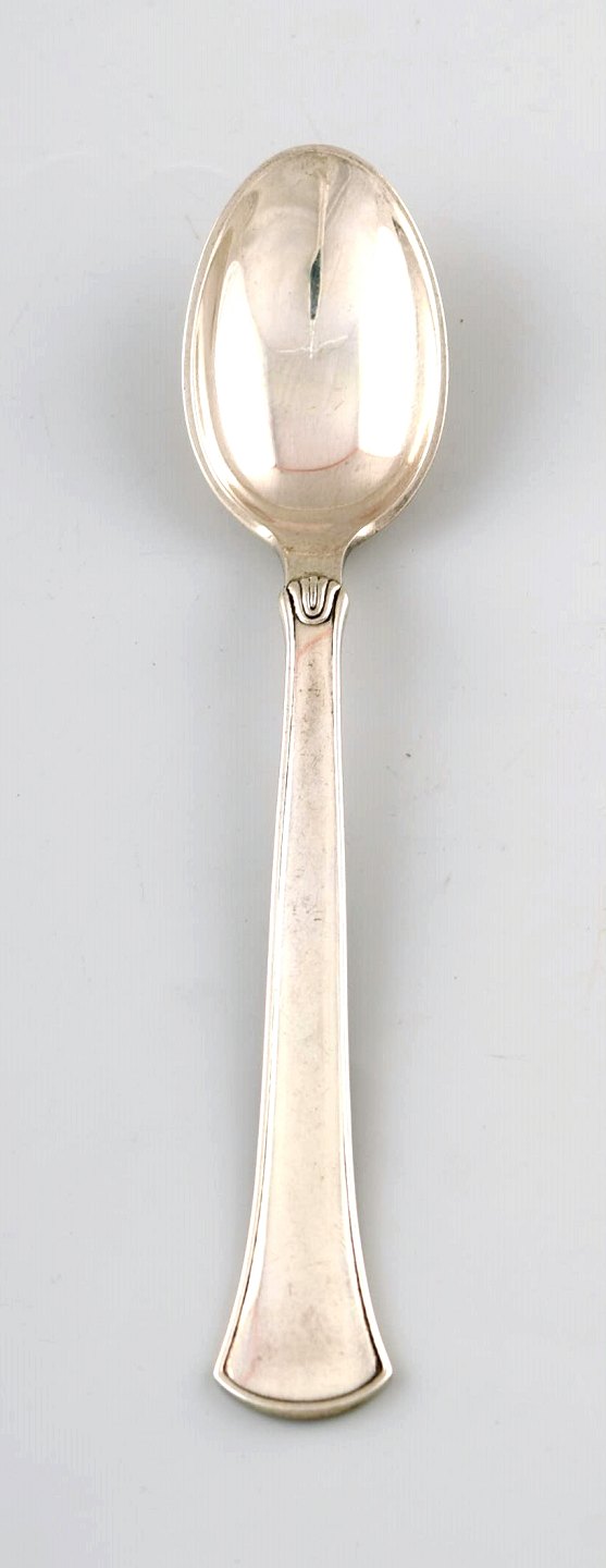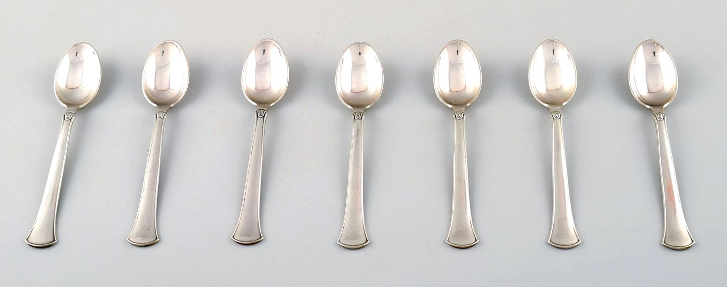 Hans Hansen silverware number 5 in sterling silver. Seven tea spoons. Measures: 11 cm. Perfect condition. Stamped.