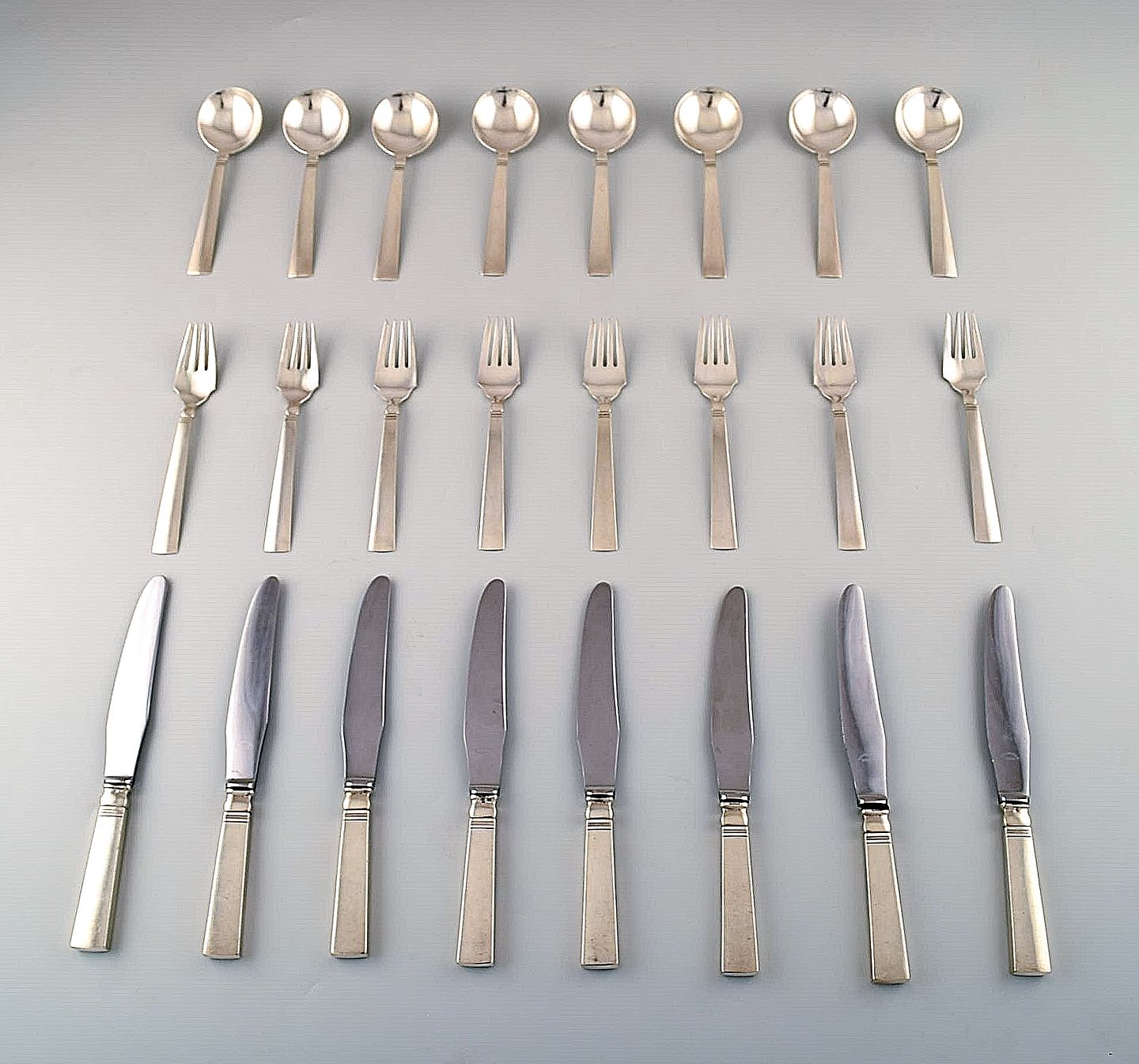 Georg Jensen Sterlingsølv Blok/Acadia Just Andersen. Bestiksæt 24 dele til 8 personer. Måler : Middagskniv 23 cm. Designet af Just Andersen, 1934. I perfekt stand. Stemplet.