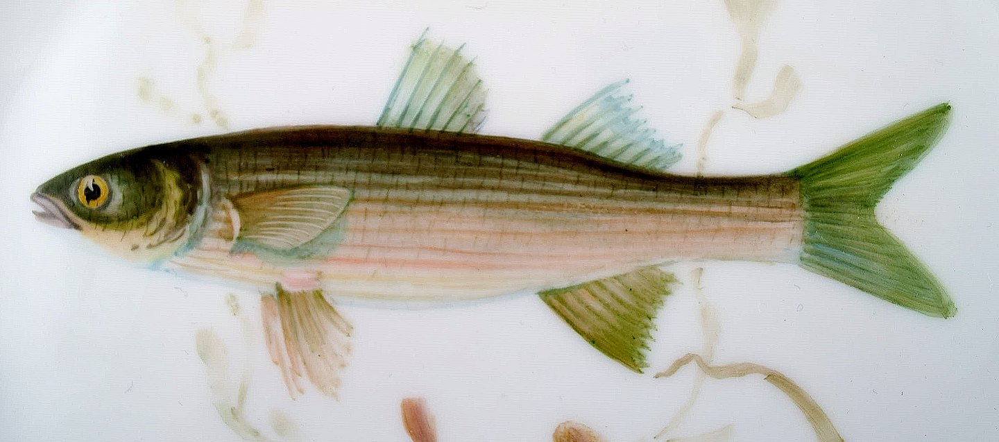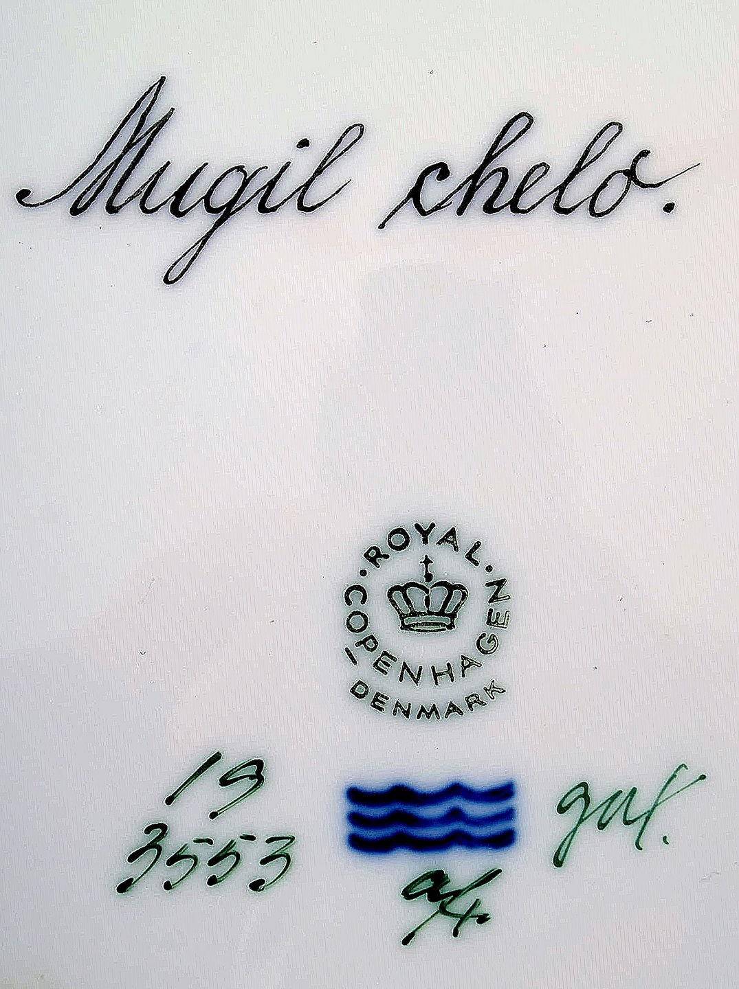 Royal Copenhagen flora Danica/fauna danica middagstallerken med motiv af fisk. Mugil chelo. Flot malet. 25 cm. i diameter. 1. sortering, i perfekt stand. Modelnummer 19/3553.