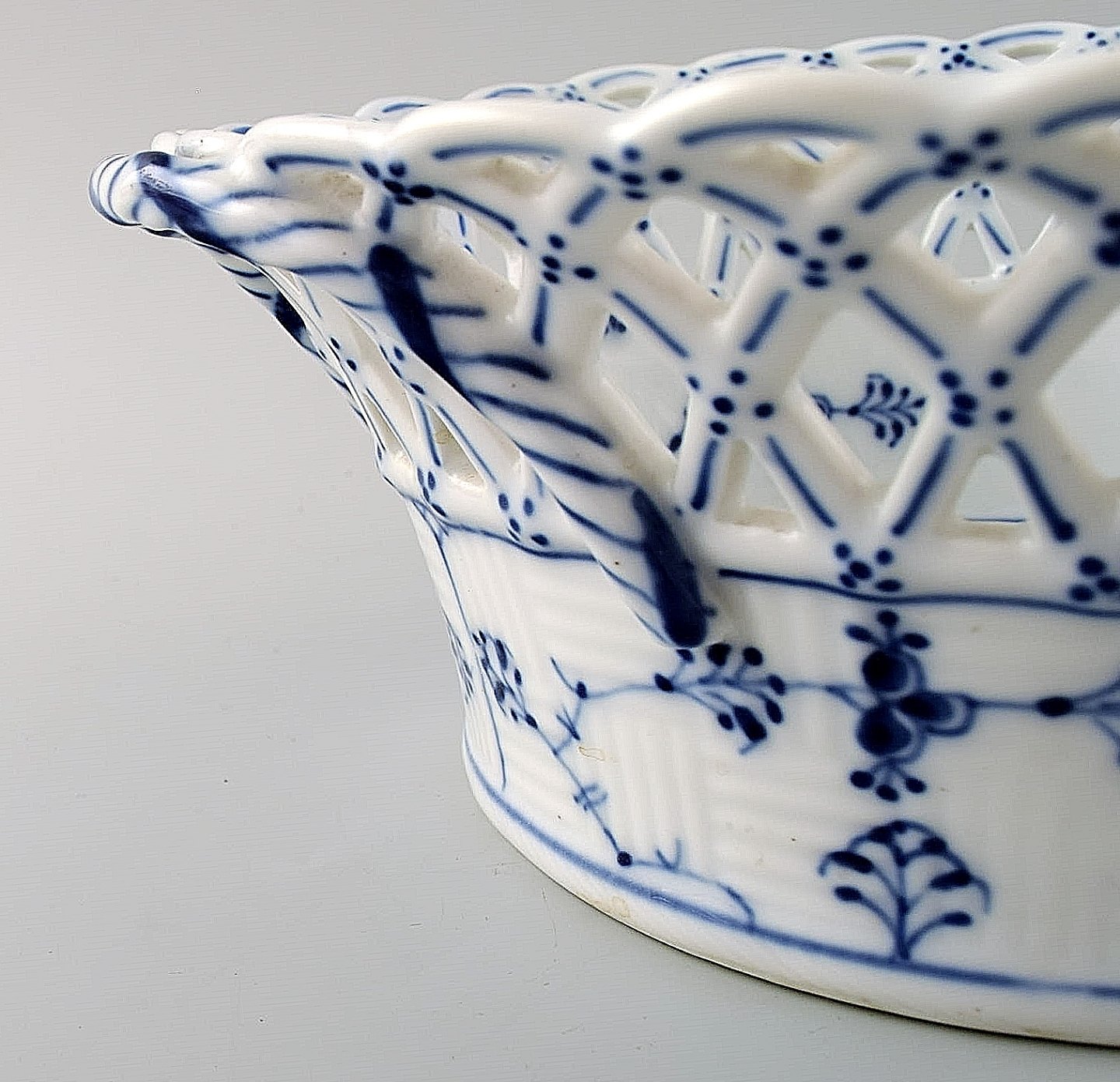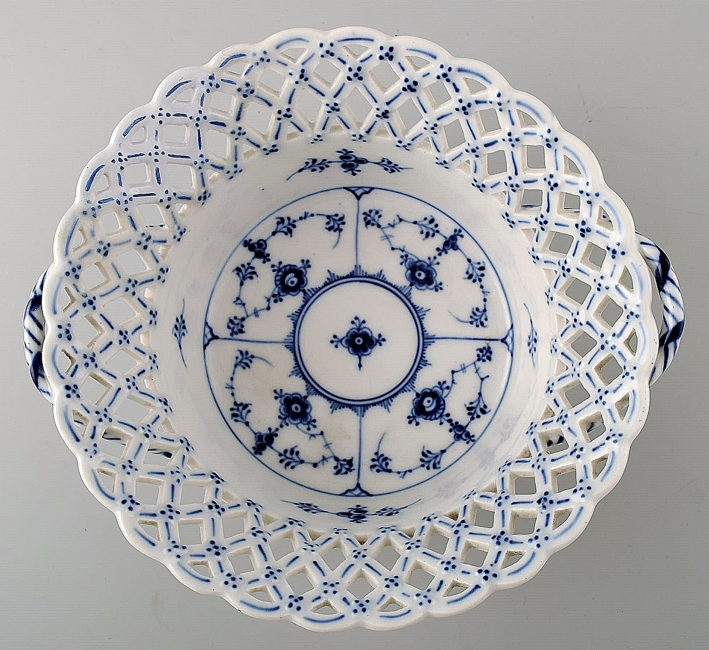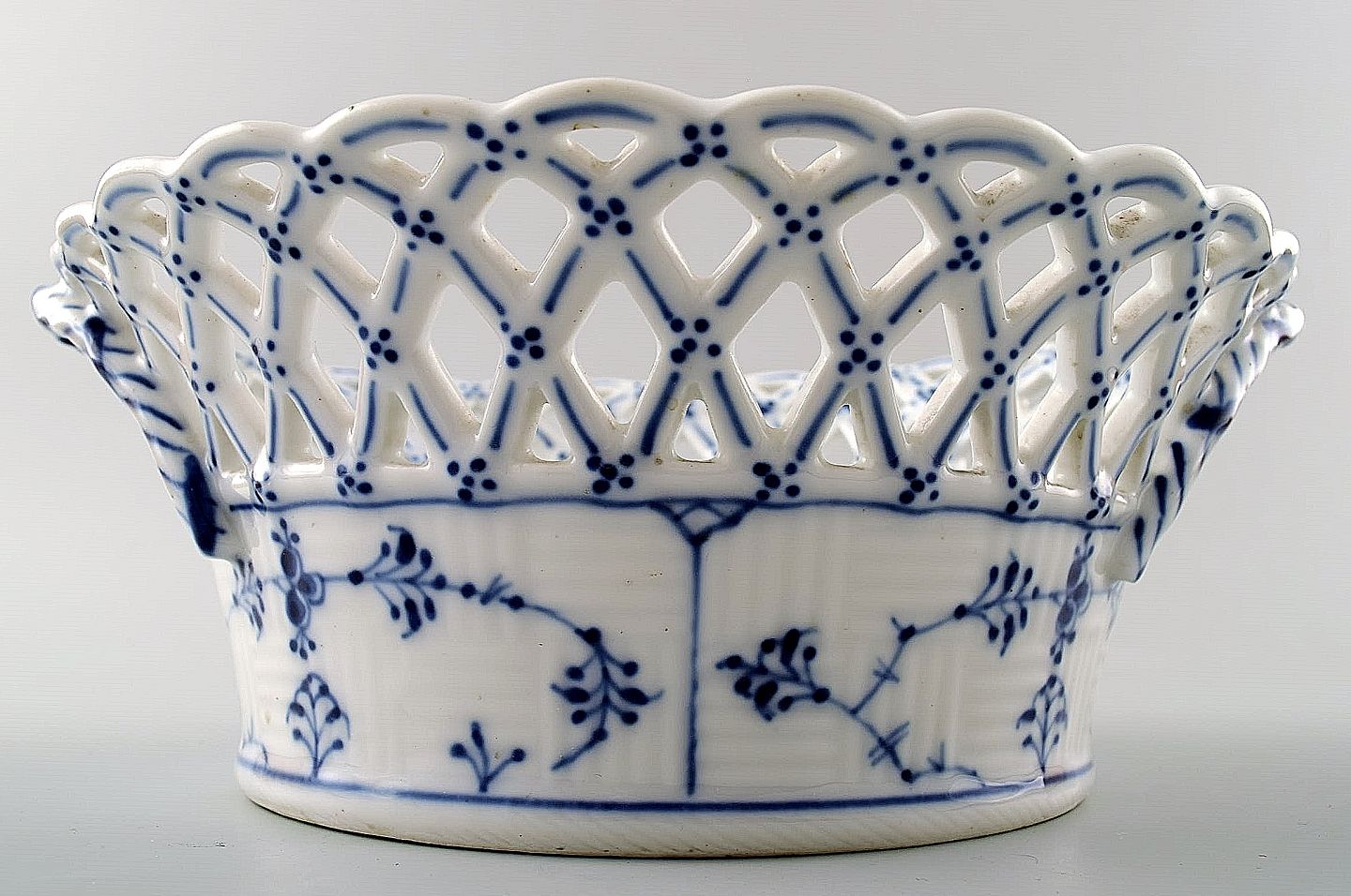 Musselmalet , helblonde frugtskål fra Royal Copenhagen. 3.sort. Dekorations nummer : 1/1052. Højde 9 cm. Diameter 22 cm. I god stand, ældre rep.