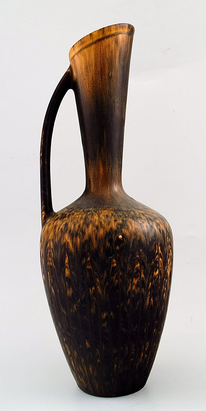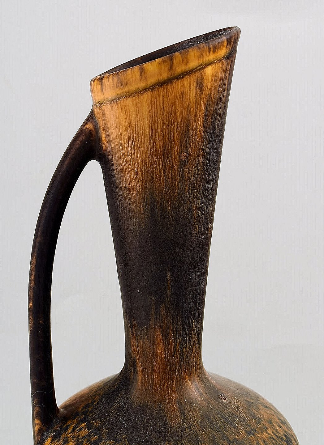 Gunnar Nylund, Rörstrand vase / pitcher in ceramics. Sweden mid 20 c. Beautiful speckled glaze in brown shades. In perfect condition. 2nd. factory quality. 27 cm. high. Stamped.