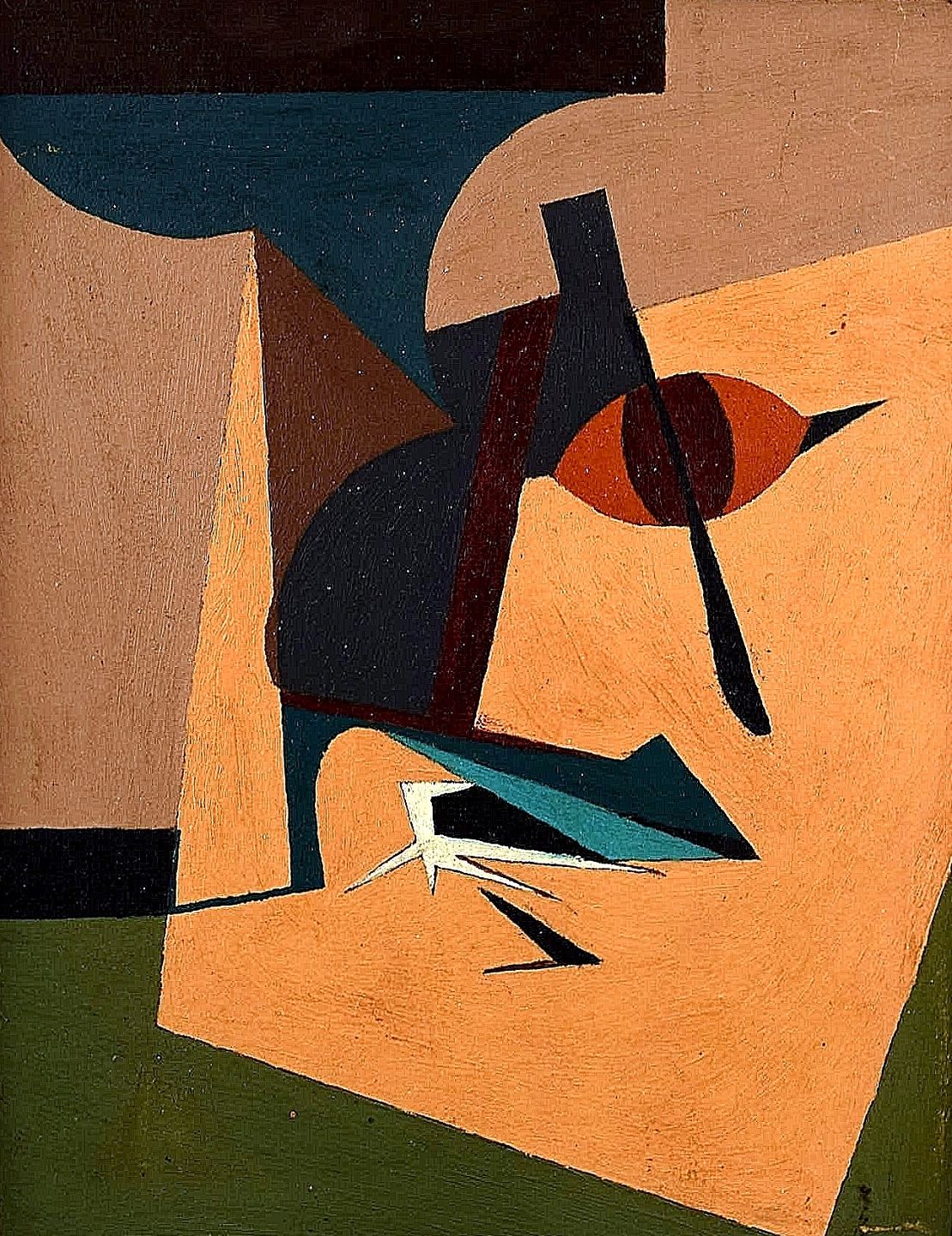 Poul Esting: Komposition. Signeret på bagsiden Poul Esting, 1978. Olie på plade. Måler 22 x 17 cm. Uindrammet. I god stand.