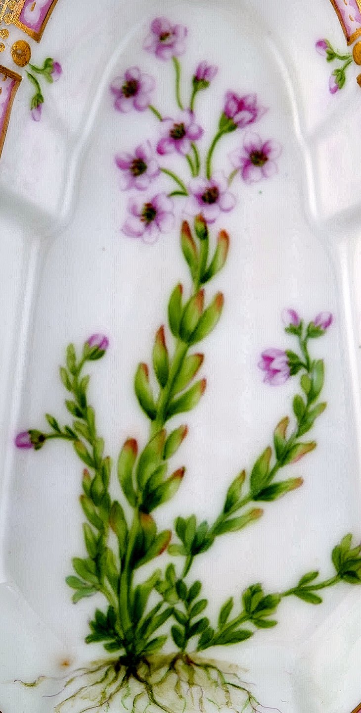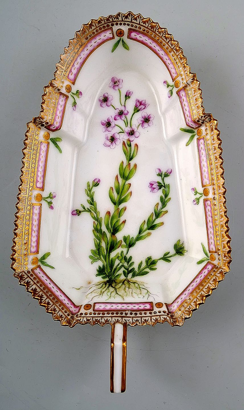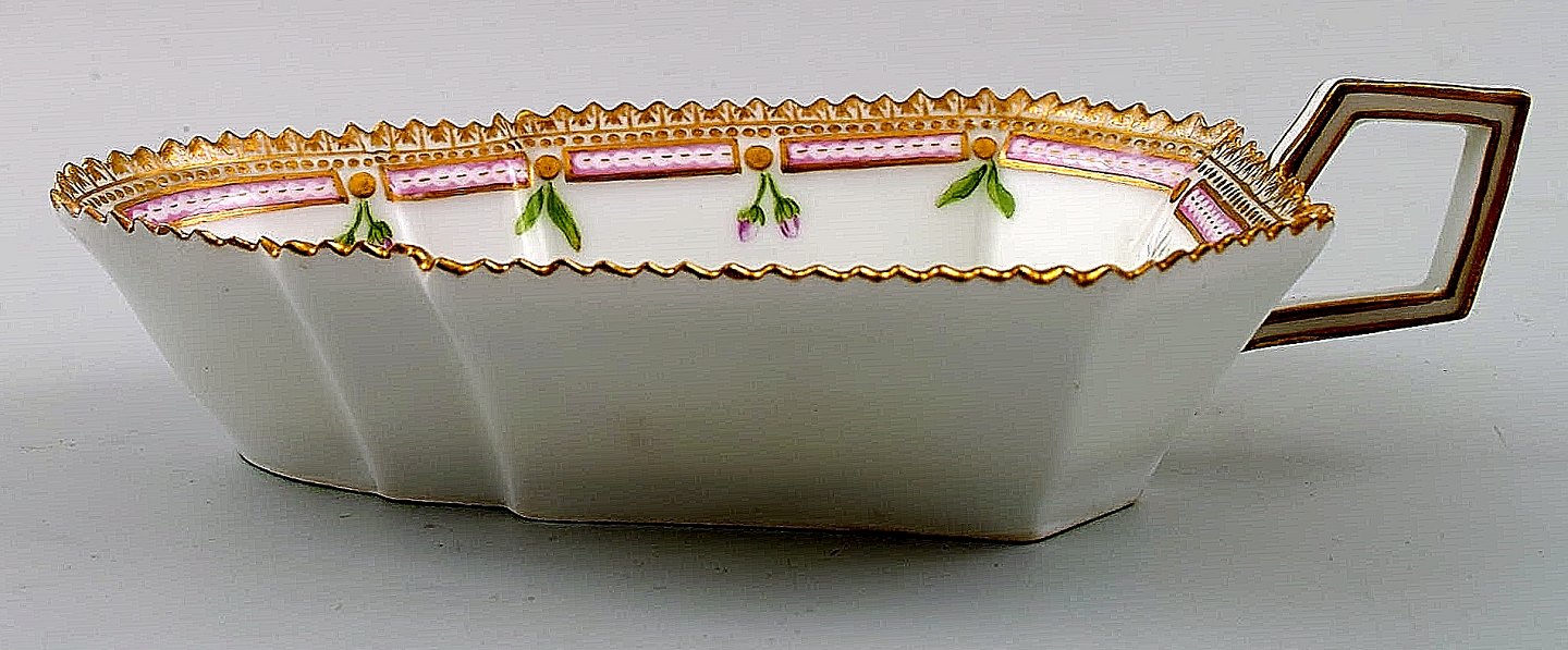 Antique Royal Copenhagen no. 20/3543 Flora Danica. Dish with handle. Approx. 1890s. 1st. factory quality. In perfect condition. Length: 18.1 cm. Width: 10 cm.