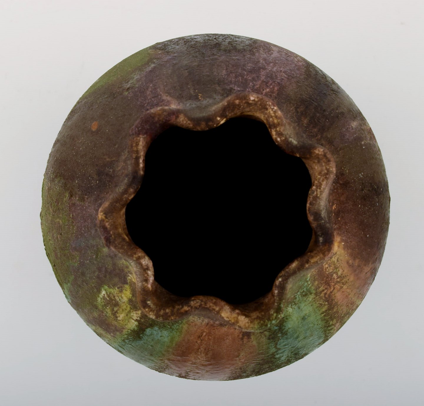 Søren Kongstrand & Jens Petersen stil. Keramik vase, grønbrun glasur. Unikaarbejde af høj kvalitet. 1920/30´erne. Måler 23 x 17 cm. I perfekt stand. Usigneret.