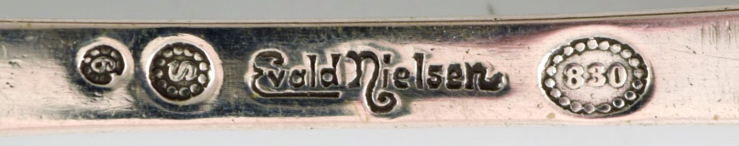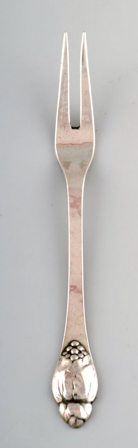 Evald Nielsen nummer 6, pålægsgaffel i sølv. Måler 14,7 cm. Stemplet. I perfekt stand.