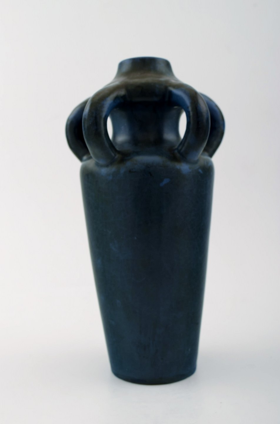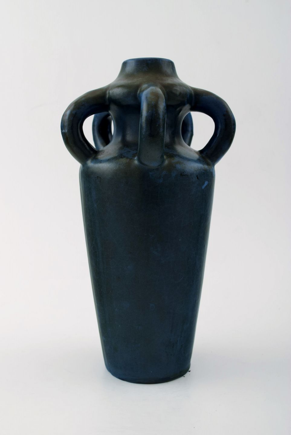 Höganäs keramikvase. Smuk mørkeblå glasur. Stemplet, ca. 1920. 23 cm. x 11 cm. I perfekt stand.