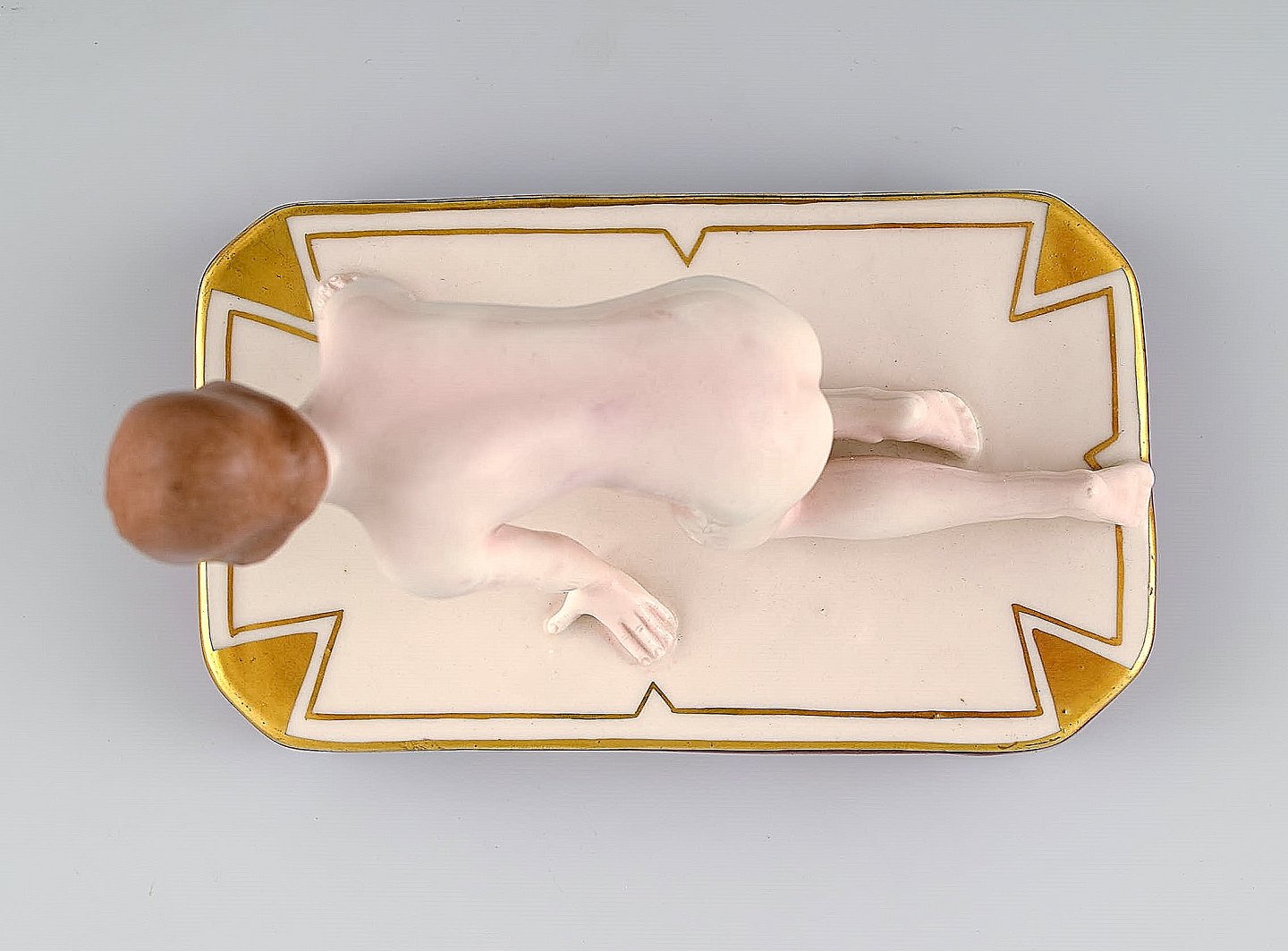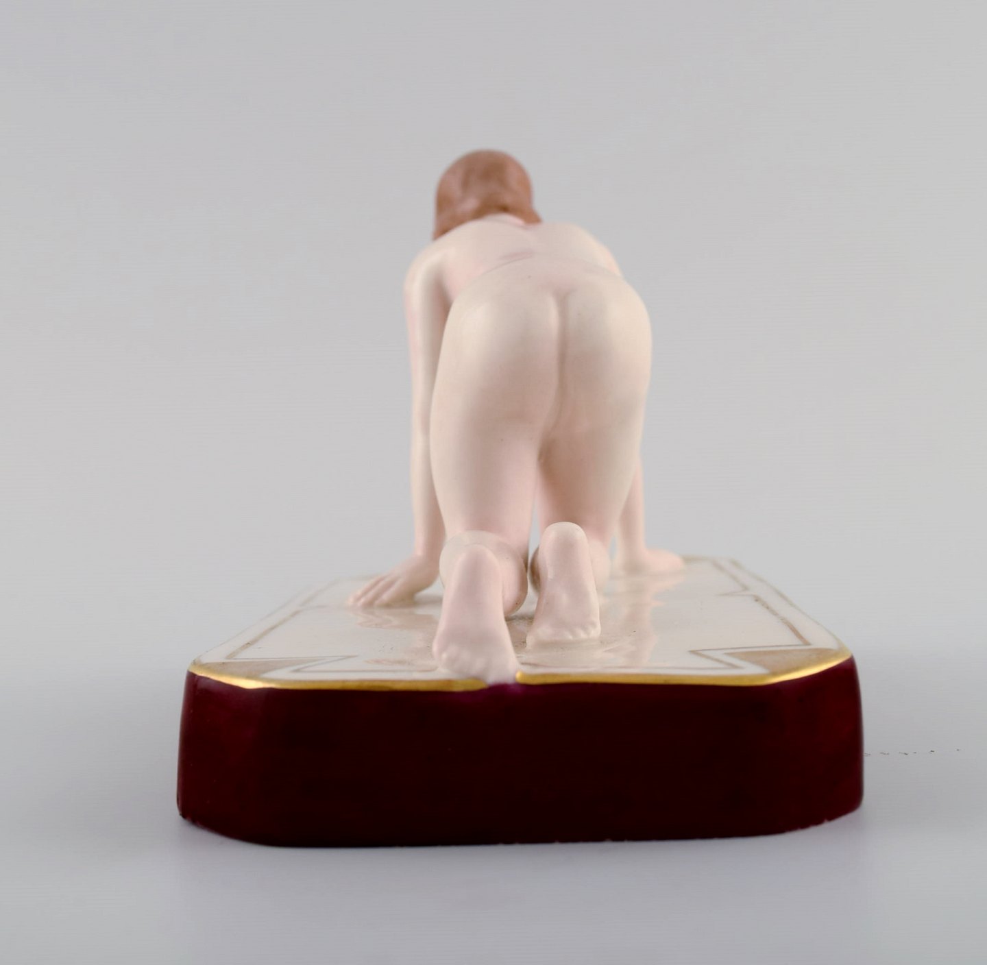 Art deco Royal Dux nøgen kvinde på sokkel, porcelæn. Måler 13,5 x 10,5 cm. x 9 cm. Stemplet. I perfekt stand.