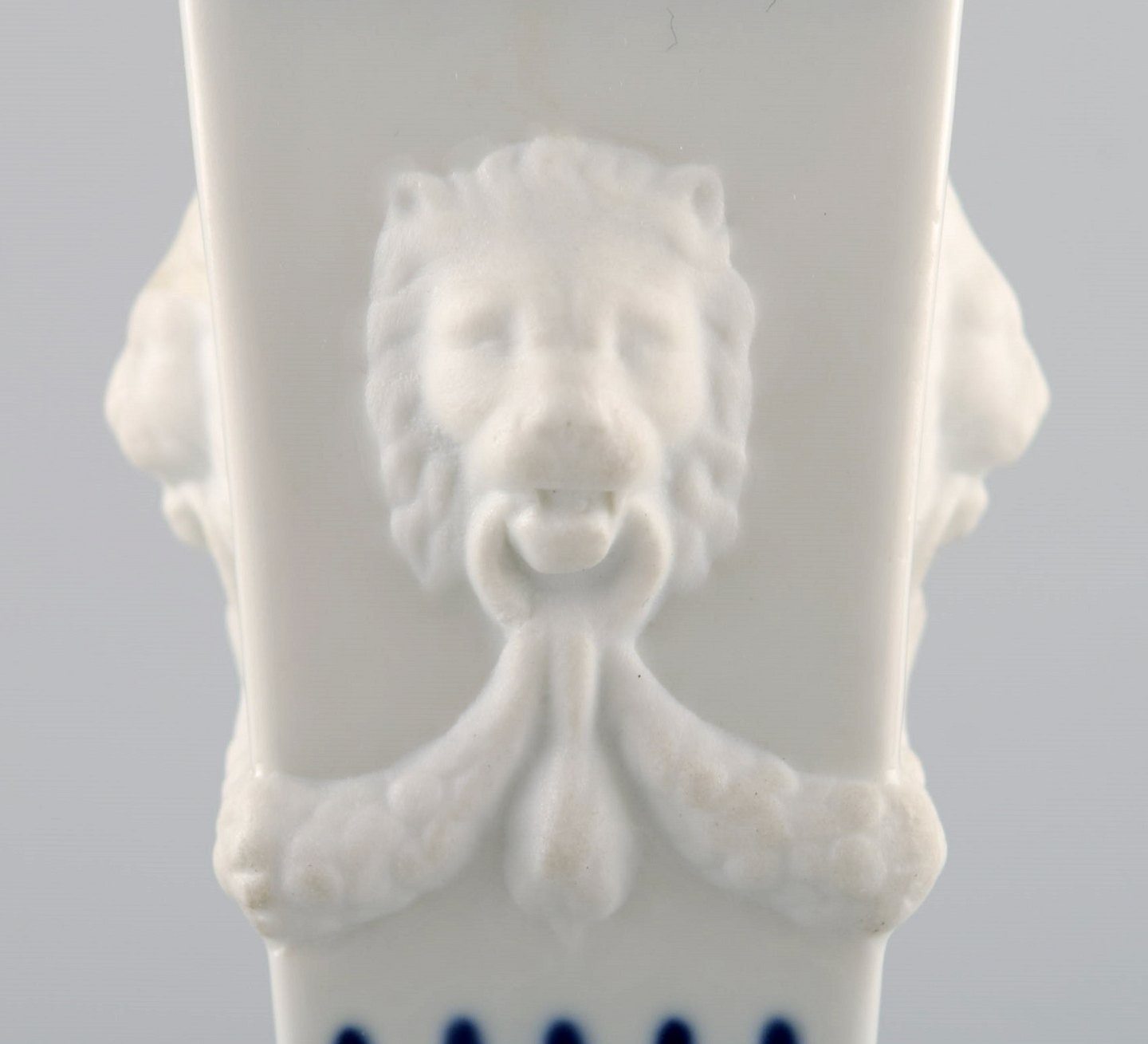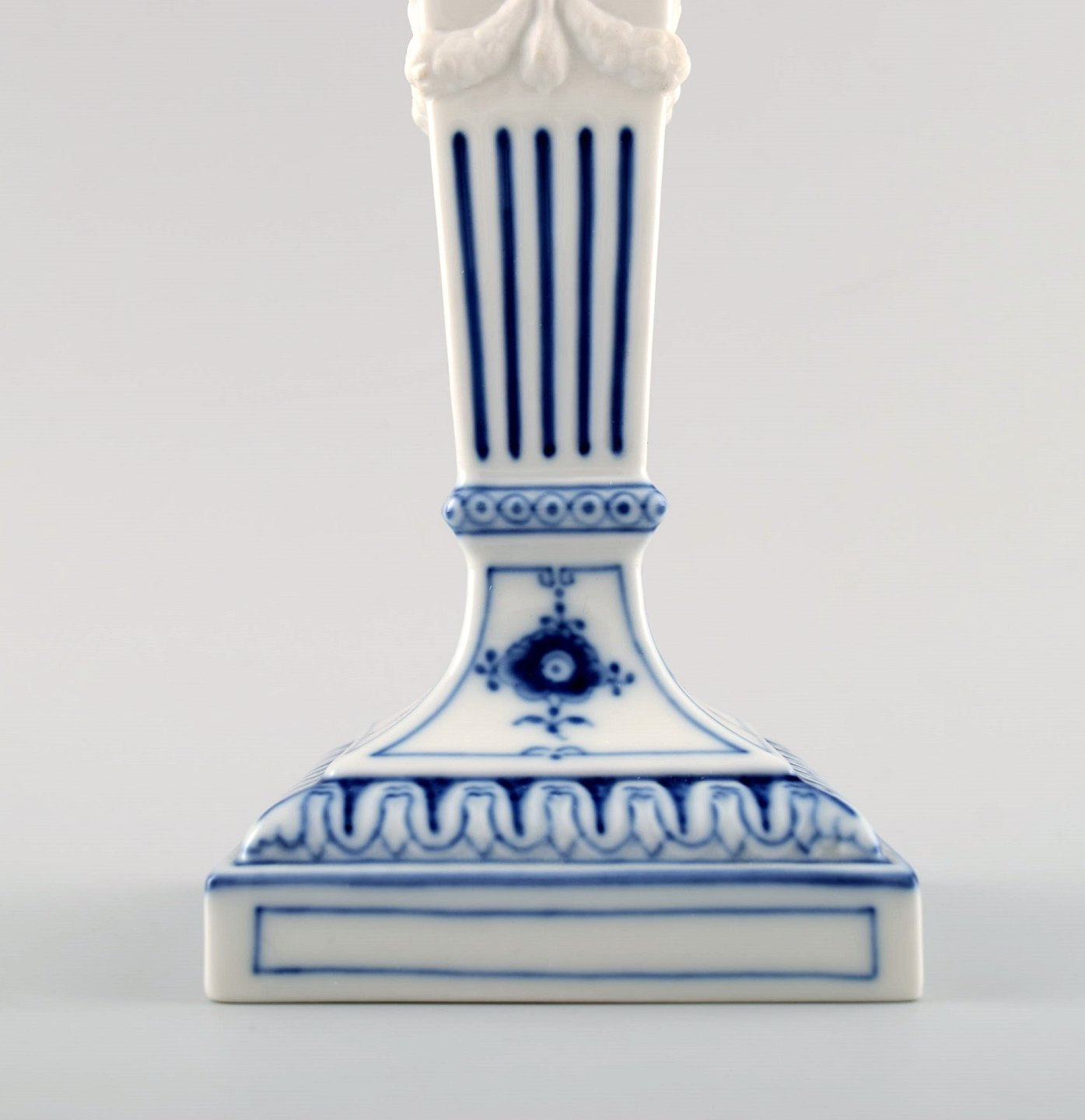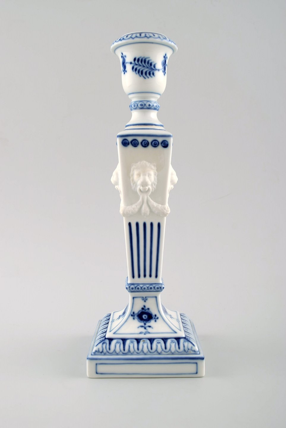 A pair of Royal Copenhagen Blue Fluted plain, candlesticks with lion heads. 1. factory Quality, in very good condition. No. 1/15. Height 22.5 cm.