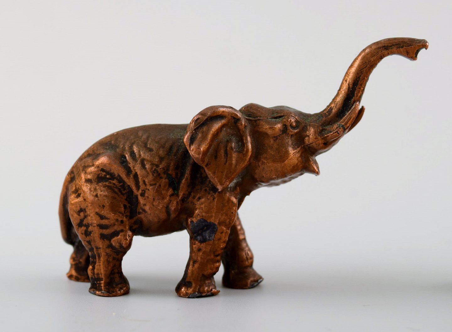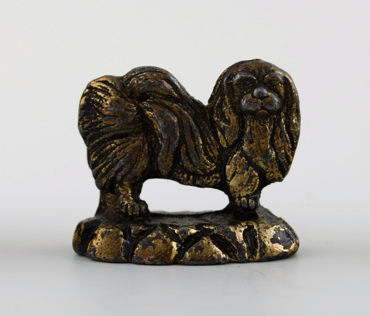 Fire miniature figurer i diverse metaller, tidligt 1900 tallet. To elefanter, skotte og pekingeser. I flot stand med god patina. Måler : Største 75 mm. x 50 mm. Delvist signeret.