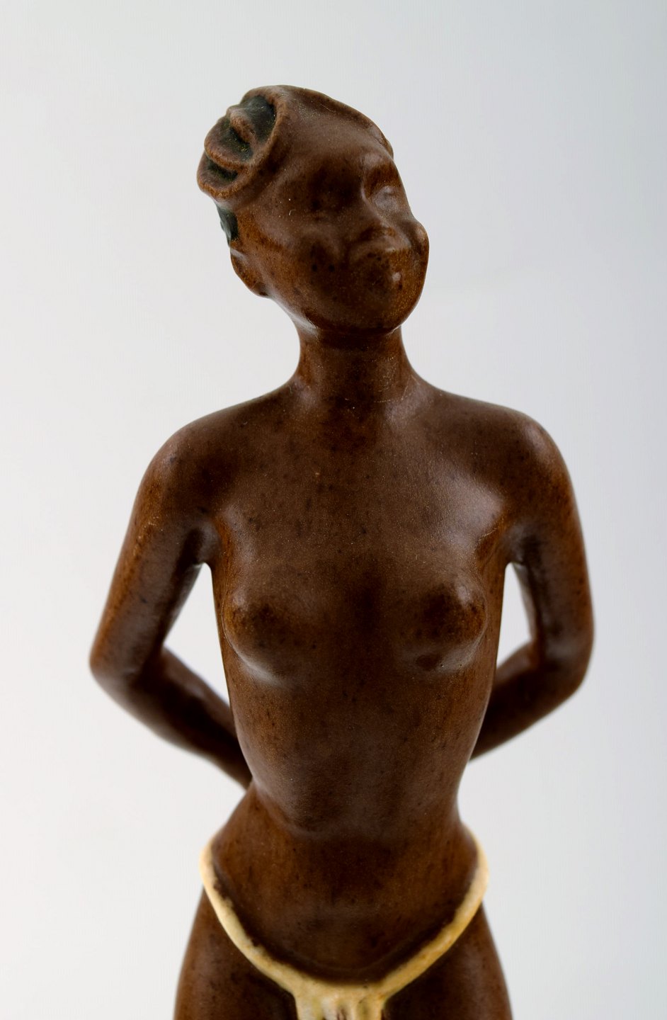 P. Ipsens Enke, sjælden figur af halvnøgen sort kvinde. Måler 21 cm. I perfekt stand. Stemplet.