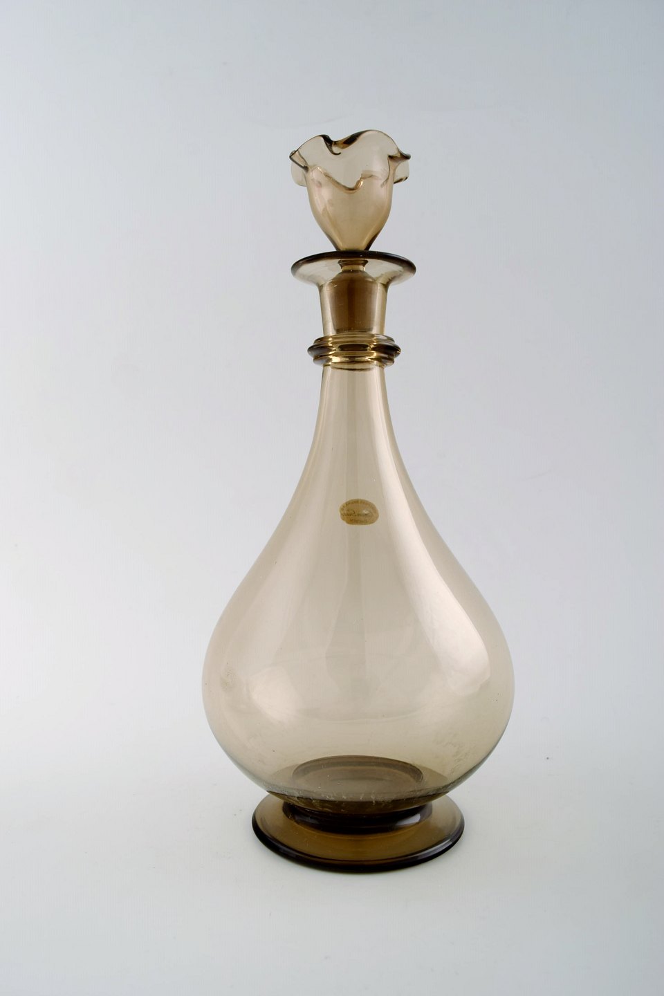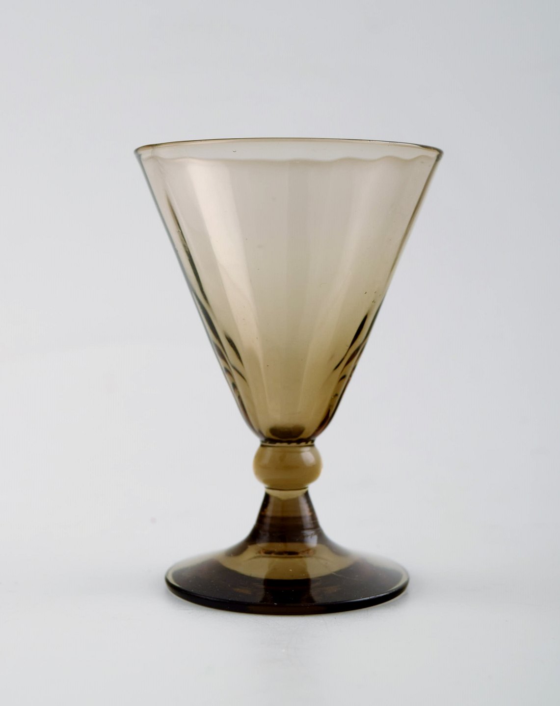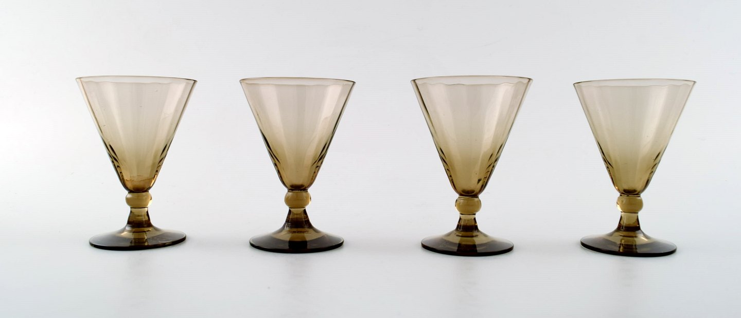 SIMON GATE for Orrefors, Art deco kunstglas 4 p. likørsæt med karaffel på bakke i røgfarvet.