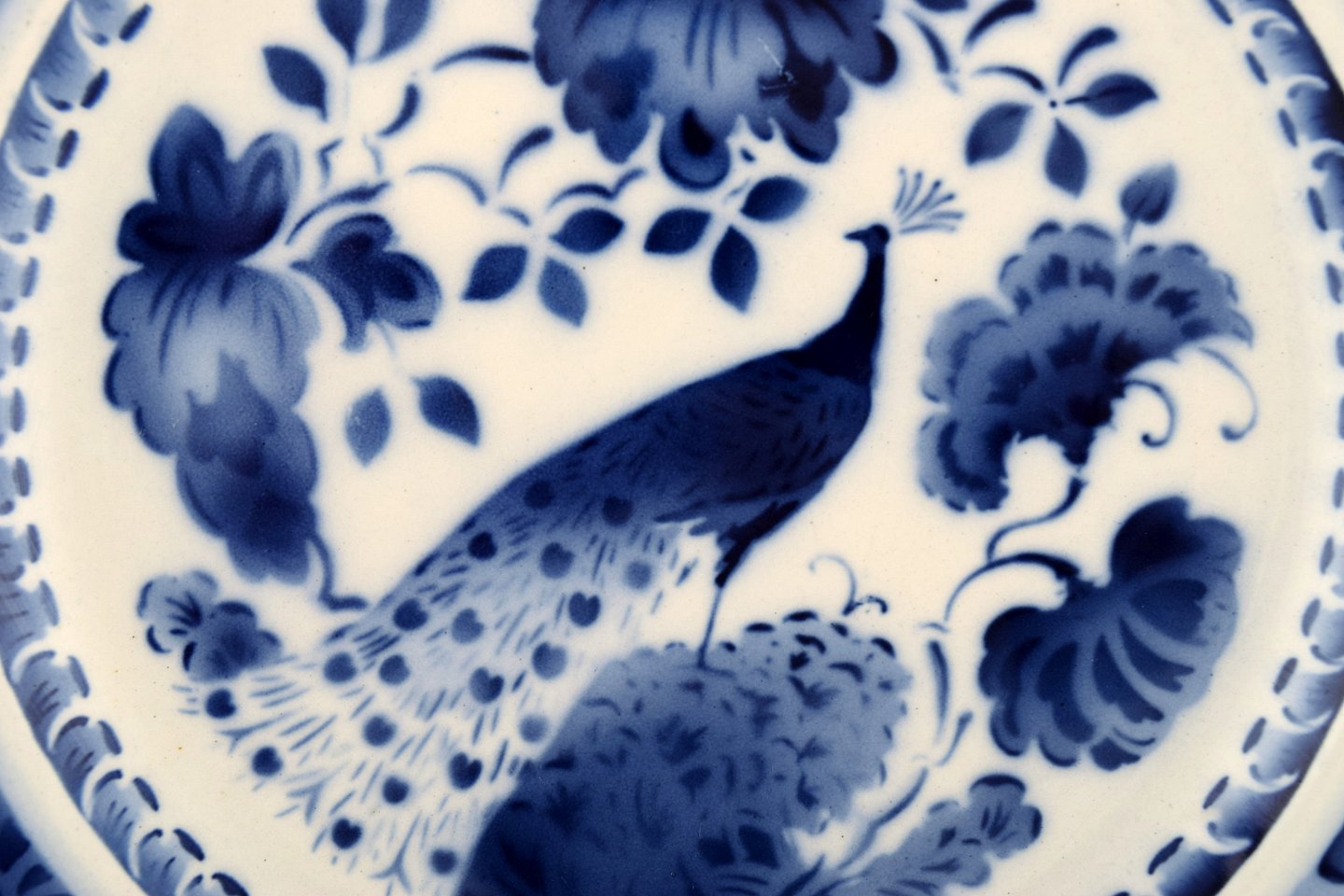 Peacock from Copenhagen faience / Aluminia. Flat plate in earthenware. 5 pieces in stock. We have many parts in stock. Measures: 25 cm. In very good condition.