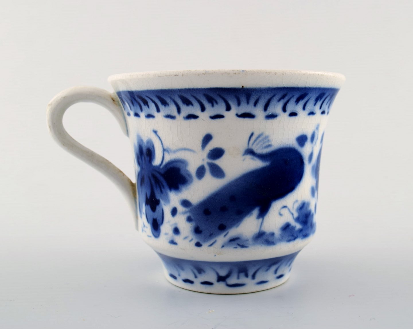 Peacock from Copenhagen faience / Aluminia. Coffee cup in faience. We have many parts in stock. Measures: 7.5 cm. 8.3 cm. In very good condition.