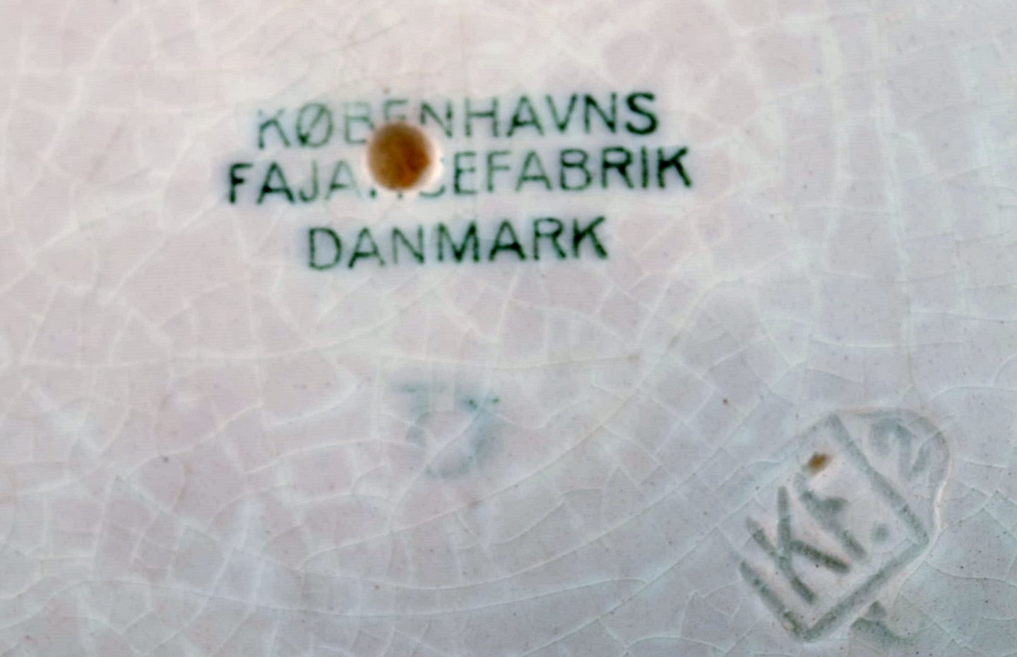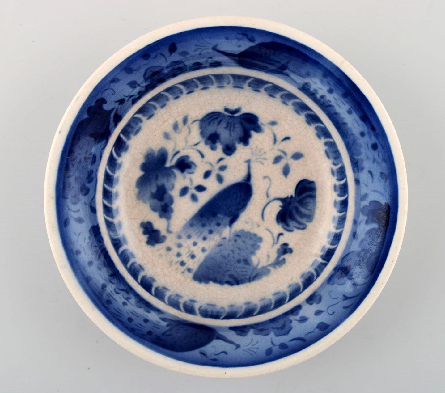 Peacock from Copenhagen's faience factory / Aluminia. Bowl in faience. We have many pieces on stock. Measures: 14,5 cm. x 3cm. deep. In very good condition.