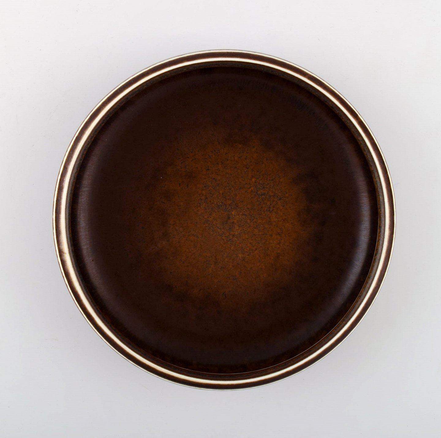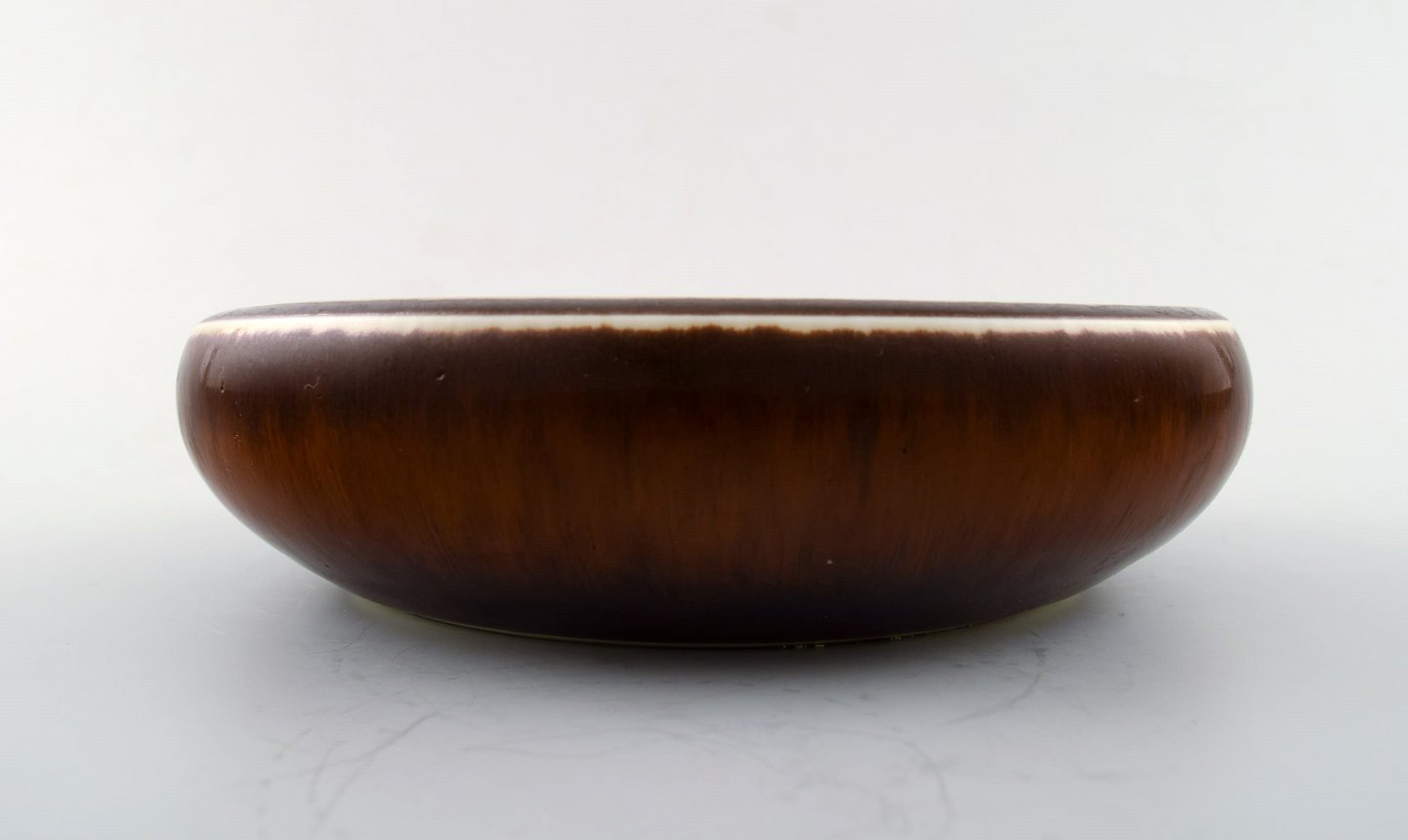 Carl-Harry Stålhane, Rørstrand, pottery dish. Beautiful glaze in brown shades. Measures: 18 x 5 cm. In perfect condition, 1st. factory quality.