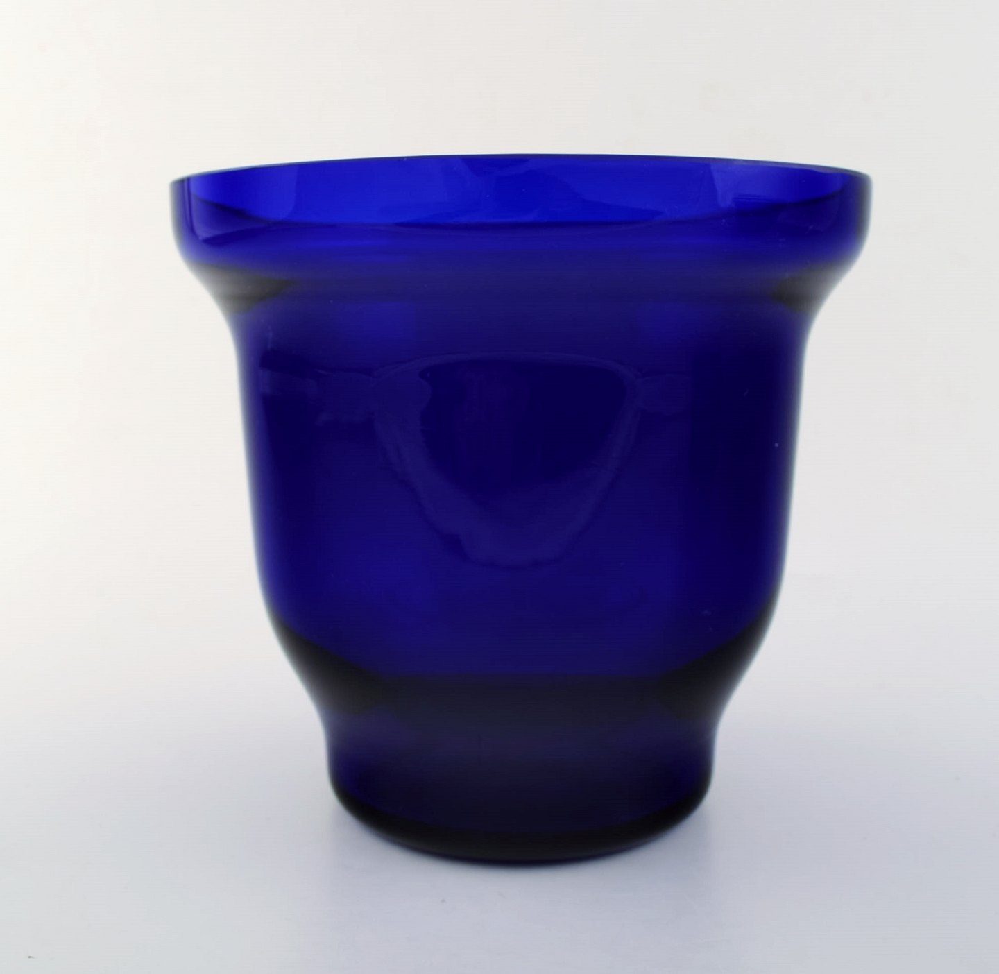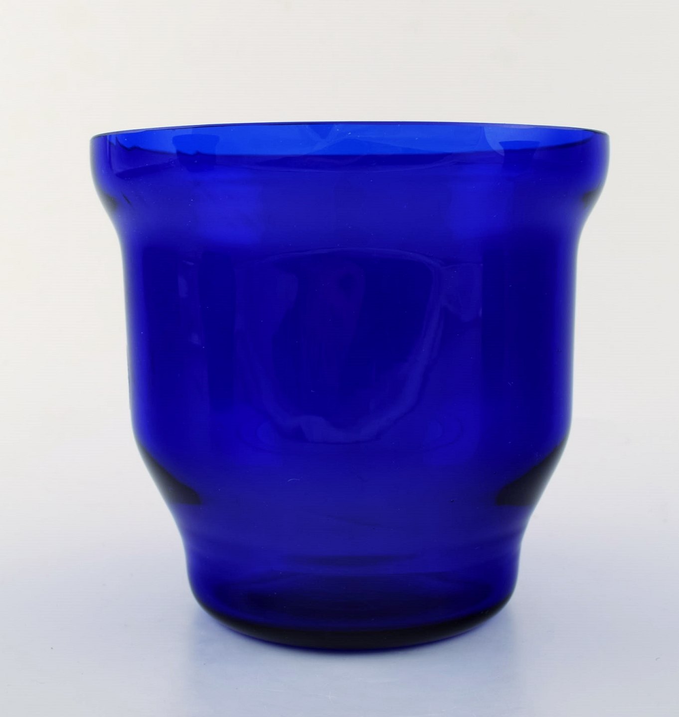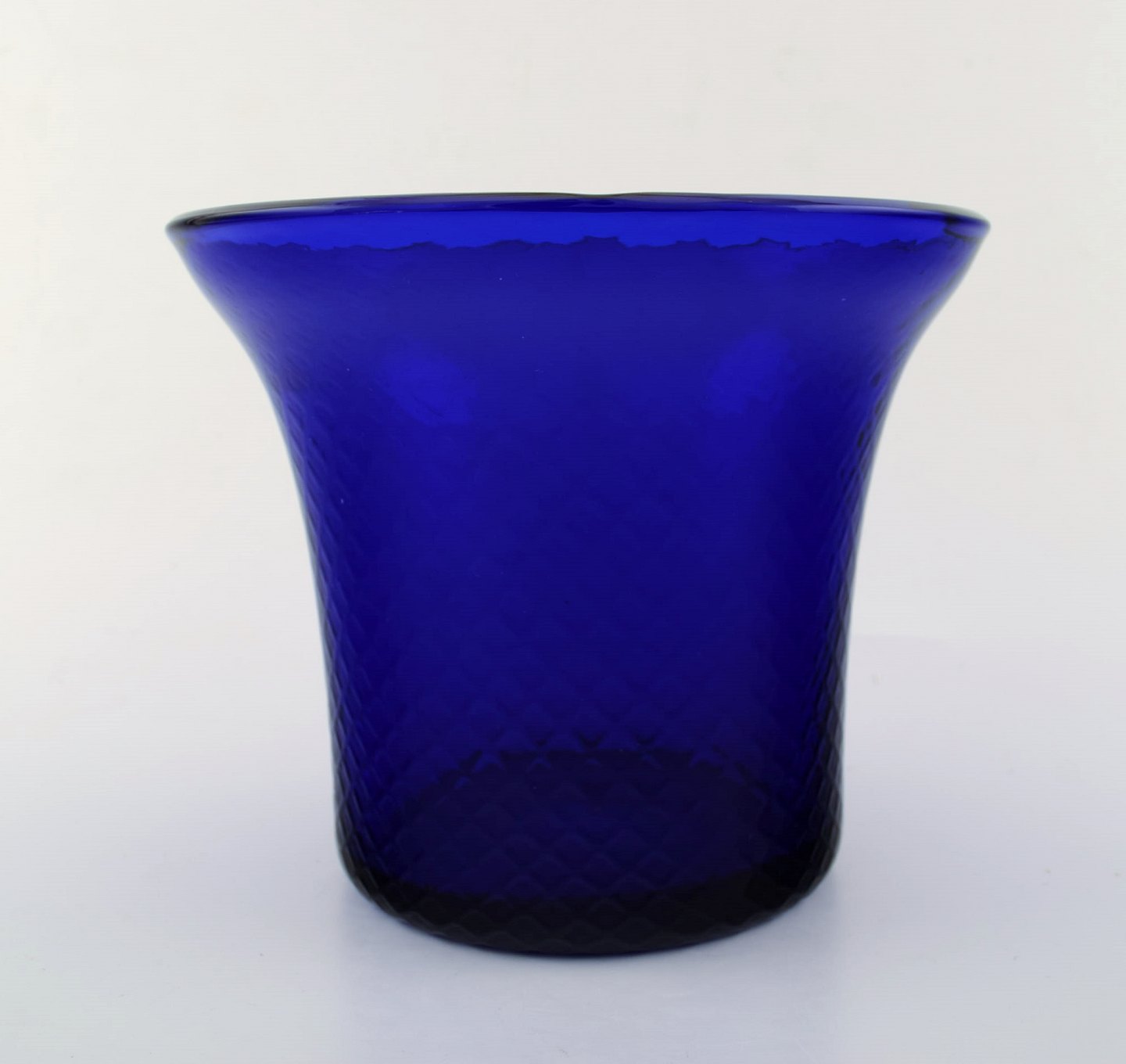 Tre retro Lyngby kunstglas vaser i blåt. I perfekt stand. Måler : 17 cm. x 16 cm. (største) Signeret.